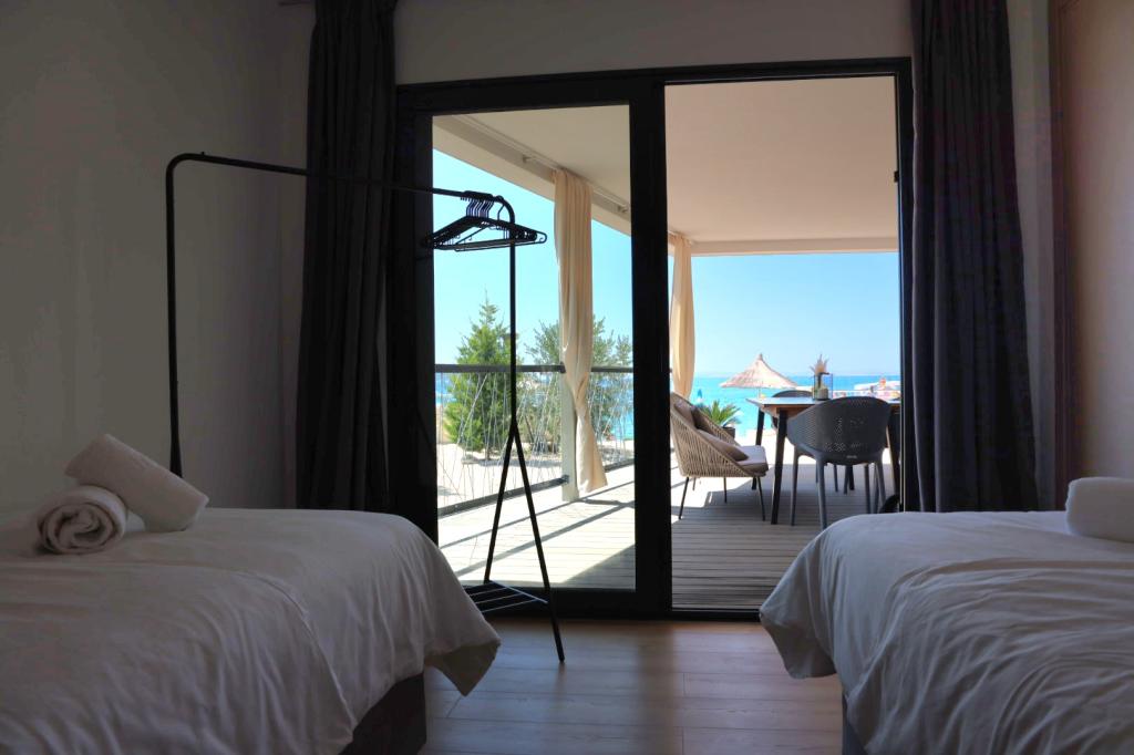 Der er mobilhomes til leje på den smukke strand. Husene er moderne og luksuriøst indrettede, de består af et stort soveværelse med badeværelse, et soveværelse, et køkken, en stue og et badeværelse samt en terrasse på 20 m2 med en smuk udsigt over havet og de nærliggende øer. Mobile homes har aircondition, tv og internet. Køkkenet er fuldt udstyret og indeholder; el-ovn, opvaskemaskine, kaffemaskine, vaskemaskine, stort køleskab, elkedel, service... Sengelinned og håndklæder er inkluderet. Husene ligger i en rolig del af byen, og er 5 minutters gang fra centrum.