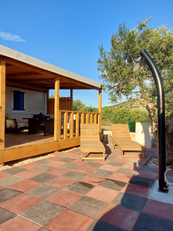 Pakoštane lejr Maslina ligger i Pakostane. Lejren ligger i rolige omgivelser på kun 10 meter fra havet. Lejren indeholder 5 moderne mobilhomes. Hvert mobilhome har sin egen store terrasse og egen grill. Parkering er også i lejren. Lejren har moderne møbler for en hyggelig familieferie i naturen af en gammel olivenlund. Velkommen til Pakostane - Camp Olive!