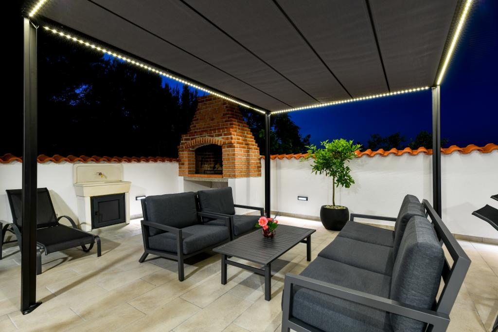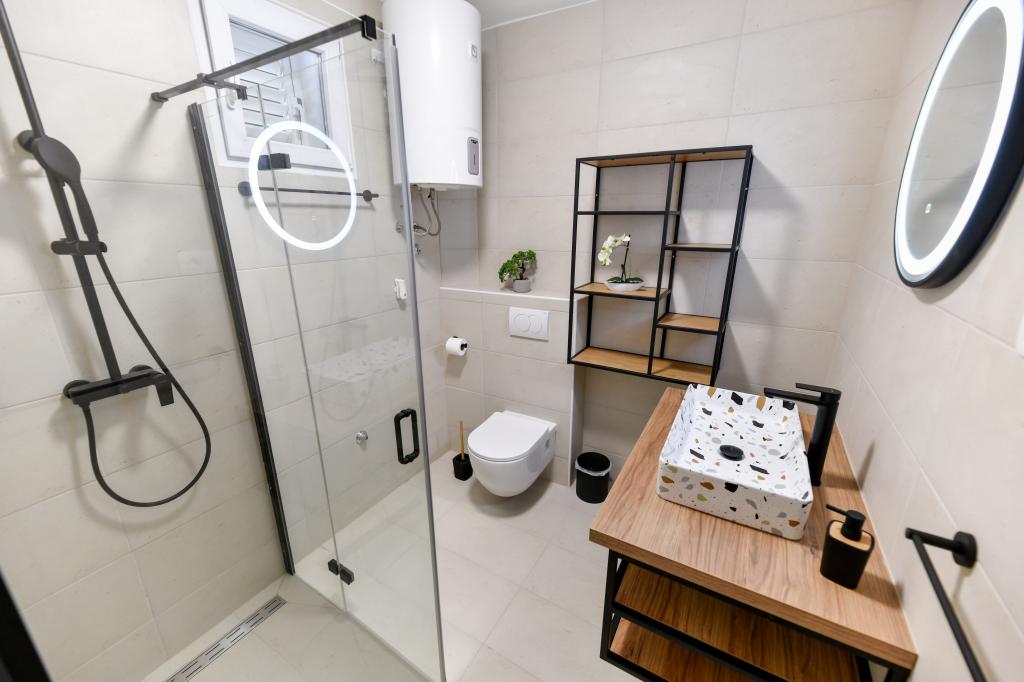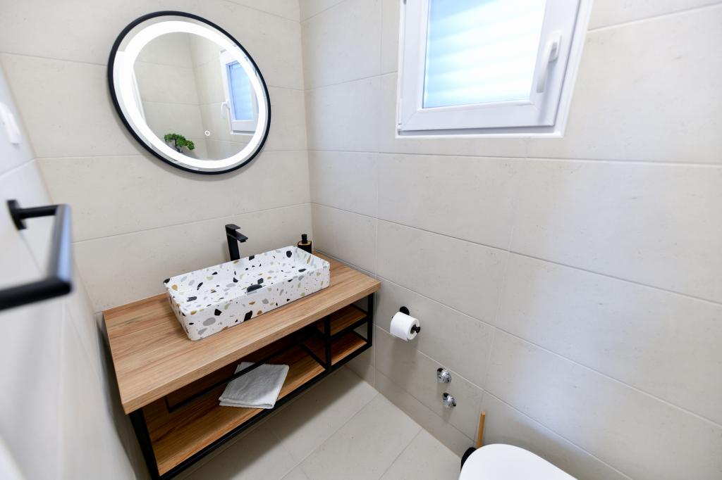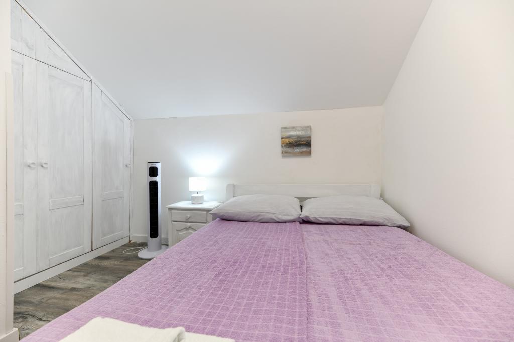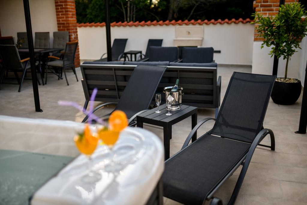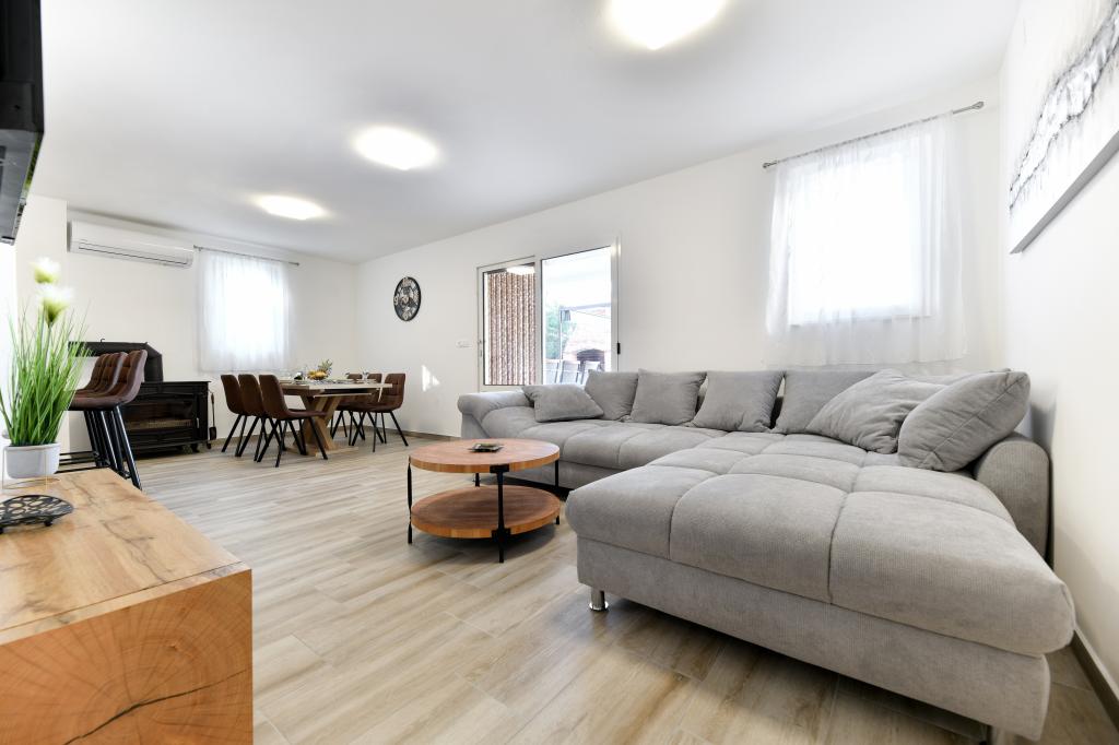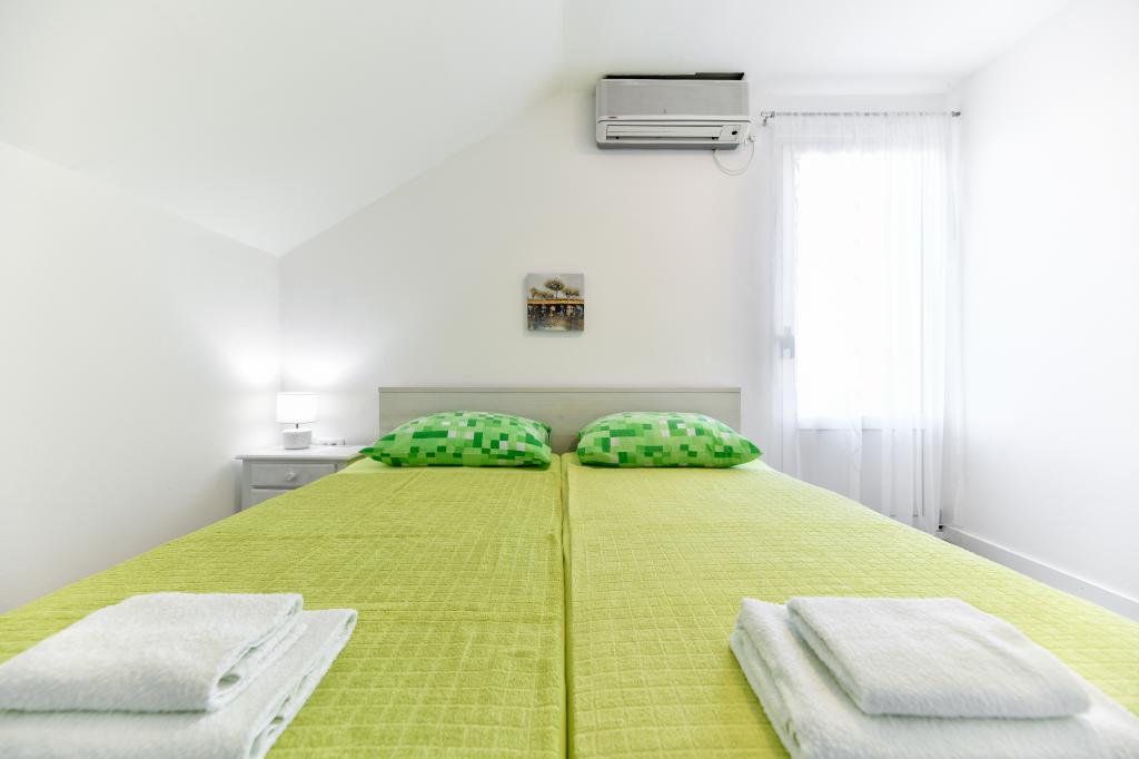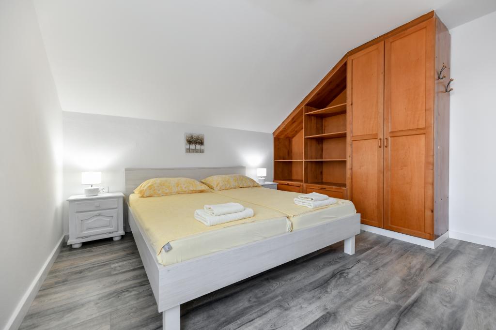 Huset ligger på øen Pašman, i en oase af fred, stilhed og skønhed i en typisk lille dalmatisk by. Tre minutters gang til stranden, fem minutter til butikken. Anlægget har en stor udendørs terrasse, grill, liggestole, en gynge til hvile og et hydromassagekar. I stueetagen er der stor stue med køkken, to badeværelser og tre toiletter samt vaskemaskine. Der er 4 soveværelser på første sal, to værelser har udgang til stor terrasse med udsigt over havet, en dobbeltseng størrelse 180x200, og de to andre værelser har en dobbeltseng 160x200, og udsigt til skoven. Der er også et toilet på første sal. En barneseng er tilgængelig efter anmodning. Der er tre parkeringspladser i gården, samt mulighed for at benytte udendørs bruser. Huset blev totalrenoveret i maj 2023. Et ophold på 10 personer er også muligt, i hvilket tilfælde der tilbydes indkvartering for to personer i en studielejlighed på samme grund mod et ekstra gebyr. Studielejligheden har et køkken med alle hårde hvidevarer, et badeværelse med bruser, tv, aircondition og en terrasse med udsigt over havet.