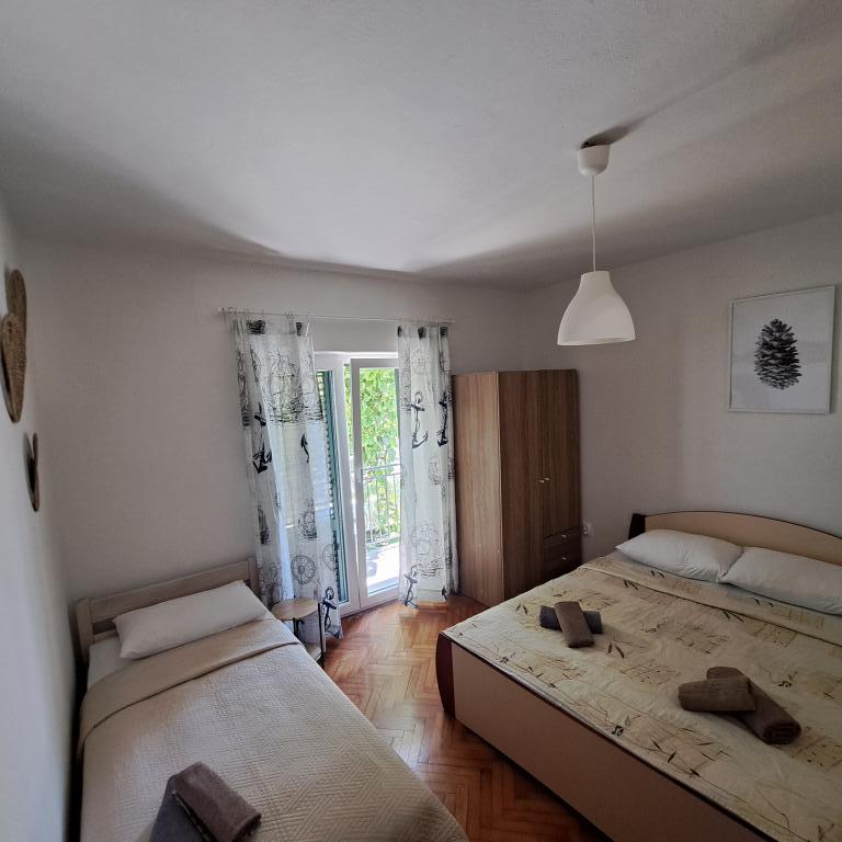 Værten er en meget god vært, indkvarteringen er pæn og ren, parkering ved huset i gården, afstanden til stranden er 2-3 minutter. Meget godt sted at slappe af. Stranden er af småsten, som gradvist bliver til sand på bunden af havet. Vandet i havet er klart og rent. På stranden er der brusere, liggestole, parasoller, restauranter, barer. Top sted.