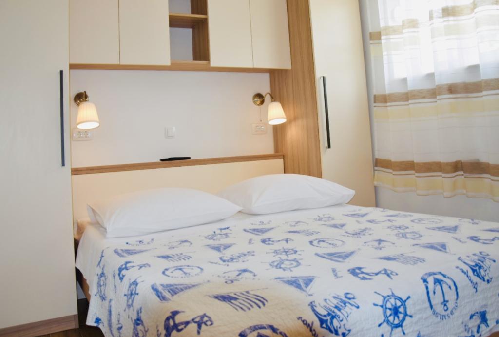 Fuldt udstyrede 1 værelses lejligheder i Petrčane, Punta Skala-området. Sikker parkeringsplads for hver lejlighed tæt på butikker og restauranter. Ejendom beliggende 200 m fra stranden, 500 m fra centrum af Petrcane.