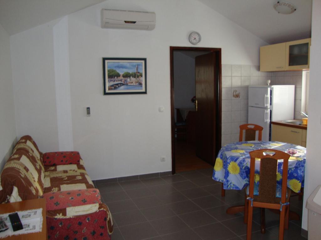 Villa Damir tilbyder komfortabel indkvartering 150 m fra stranden i turistbyen Petrcane nær Zadar. Huset ligger i en stille og rolig gade, kun 150 m væk fra havet, og omkring 200 m fra byens centrum og de største turistattraktioner. Indkvarteringen er velegnet til en familieferie i Petrcane, små gruppeferier såvel som elskere af vandsport og aktiv ferie. Hos Villa Damir tilbyder vi vores kære gæster indkvartering i 4 fuldt møblerede lejligheder med plads til 2-5 personer. Lejlighederne består af et fuldt udstyret køkken med spiseplads og stue, soveværelse med dobbeltseng, badeværelse (toilet / bruser) og en terrasse med smuk udsigt over havet. Lejlighederne har aircondition, varme, satellit-tv, internet, vaskemaskine. . I den smukt anlagte middelhavshave er gæsterne velkomne til at bruge grill og udendørs siddepladser. Haven er indhegnet og sikkert for børn at lege. Der er parkeringsplads. Dine kæledyr i vores lejligheder er tilladt med forudgående varsel. Inden for 100 til 200 meter fra lejligheden er der: strand, promenade, butikker, restauranter, centrum og alt hvad du har brug for et behageligt ophold i Petrcane. Petrcane er et malerisk turiststed mellem Zadar og Nin, 900 år gammel. Det er pyntet med en 2 km lang sten og klippestrand, omgivet af fyrretræer, hvilket giver dig muligheden for at hvile i fred og ro, og det klare hav til at udføre forskellige vandsport eller nyde de dalmatiske specialiteter af restauranter og taverner. Ud over Zadar og Nin, geografisk, er Petrcane velegnet til at turnere med øerne i Zadar-øhavet samt nationalparkerne Paklenica og Kornati samt naturparken Vransko jezero. Hvis du ønsker en aktiv ferie, tilbyder Petrcane en række sports- og rekreative faciliteter. I de senere år er Petrcane blevet fejret i hele Europa som vært for Havefestivalen. Vi ønsker dig en varm velkomst og et behageligt ophold, Martinovic-familien