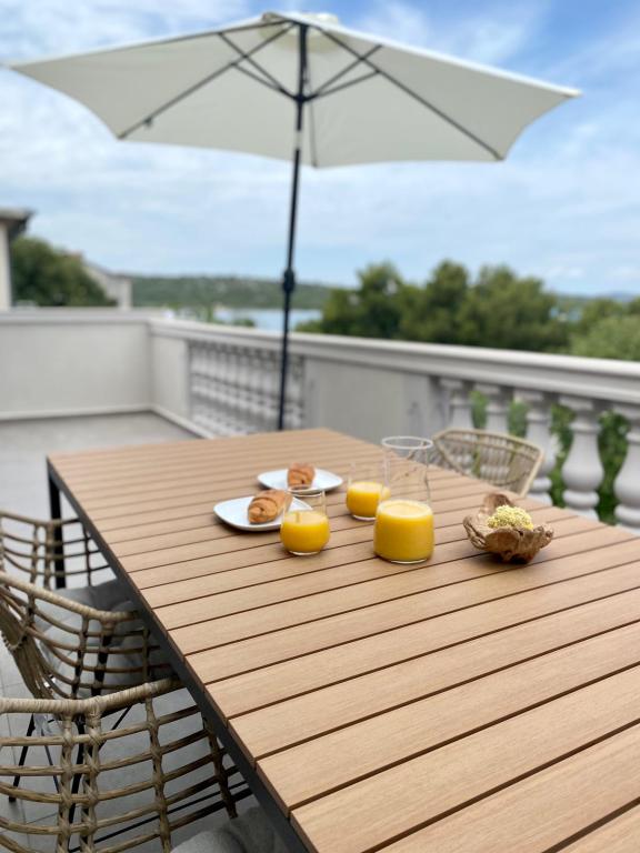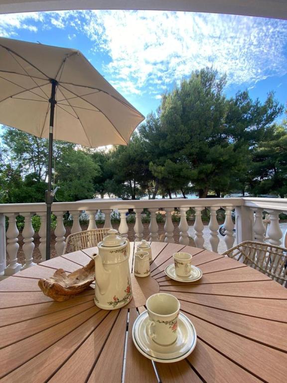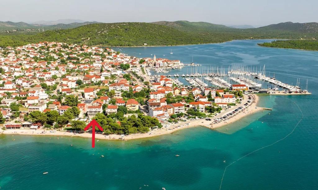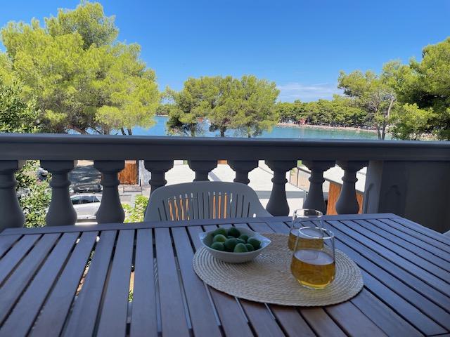 Denne sommer tilbragte vi ti dage med den unge familie i Pirovac. Lejligheden svarer til billederne, alt er nyt, pænt, rent og man kan slappe rigtig godt af. Den eneste ulempe var, at der ikke var nogen flyveskærme på vinduerne. Men det foreslog vi, at udlejerne ændrede på. Den store altan byder på en smuk udsigt over havet og den klare stjernehimmel. Den korte gåtur til stranden er perfekt. På stranden er der flere cafeer og restauranter samt en bagerstand og en lille butik med ting, som man kunne bruge ved havet/stranden.