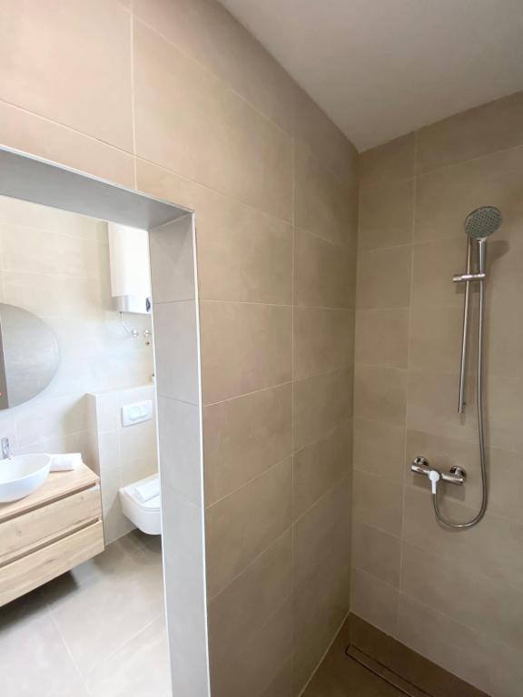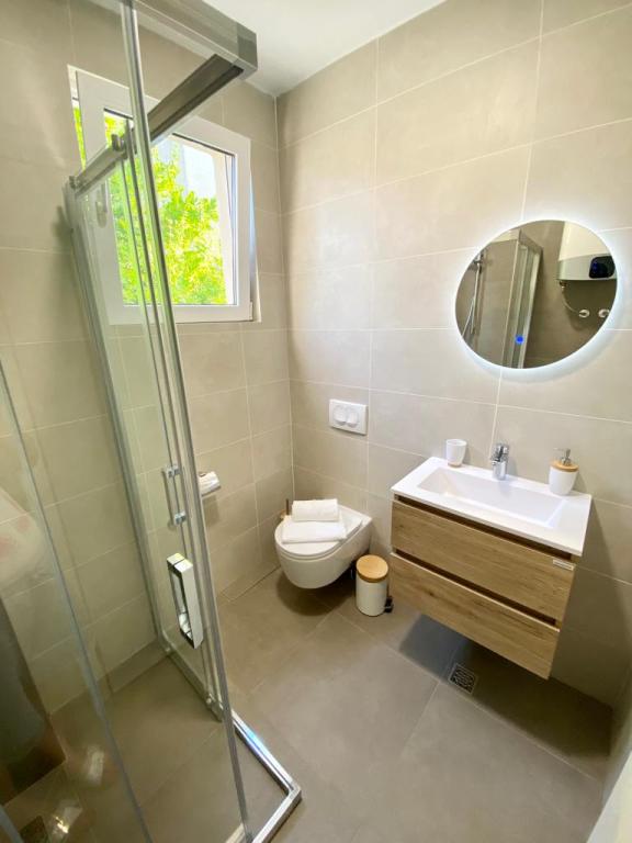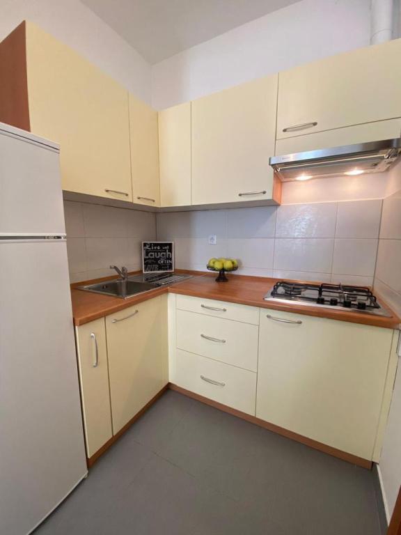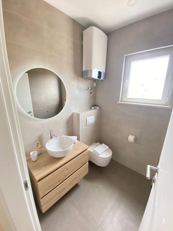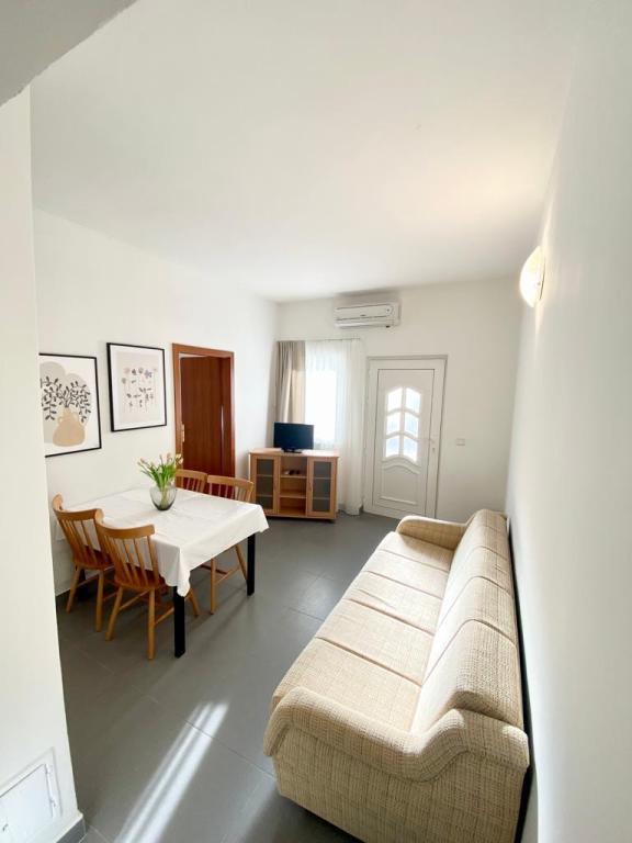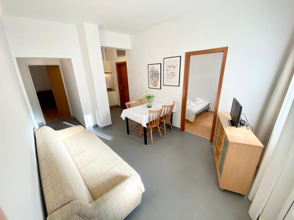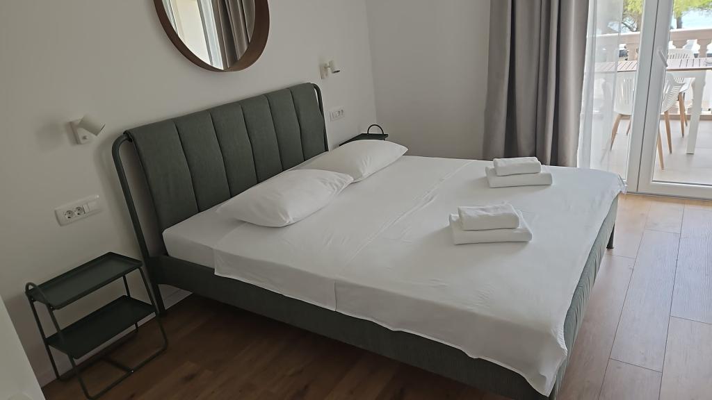 Opholdt sig i AP2+1 i stueetagen. Valget af denne bolig skyldes i høj grad fru Lana, som var så venlig og hjertelig under min henvendelse over telefonen, at vi ikke ledte længere. Lejligheden er nøjagtig som vist på billederne, uden skjulte fejl, pæn og ren, og veludstyret til et behageligt ophold. Sengen er behagelig, og der er en madraspude på sofaen, som er nok til, at en voksen kan sove. Værten Patrick er afslappet og altid tilgængelig, han sørger for, at du føler dig velkommen. Placeringen kunne ikke være bedre, stranden 1 minut eller 5 minutter afhængigt af hvor du vil svømme, centrum 5 minutter. Disse værter og deres lejligheder kan tjene som et eksempel på, hvordan man gør forretninger i privat turisme, hvis du allerede betaler noget, får du virkelig noget for de penge. Stor anbefaling til alle.