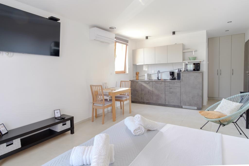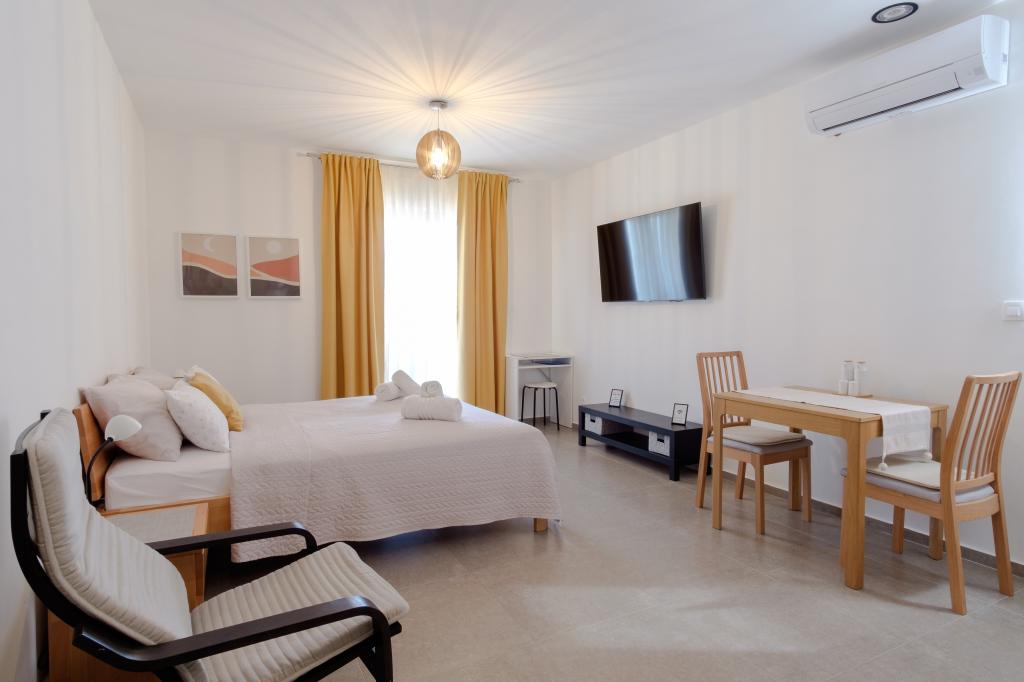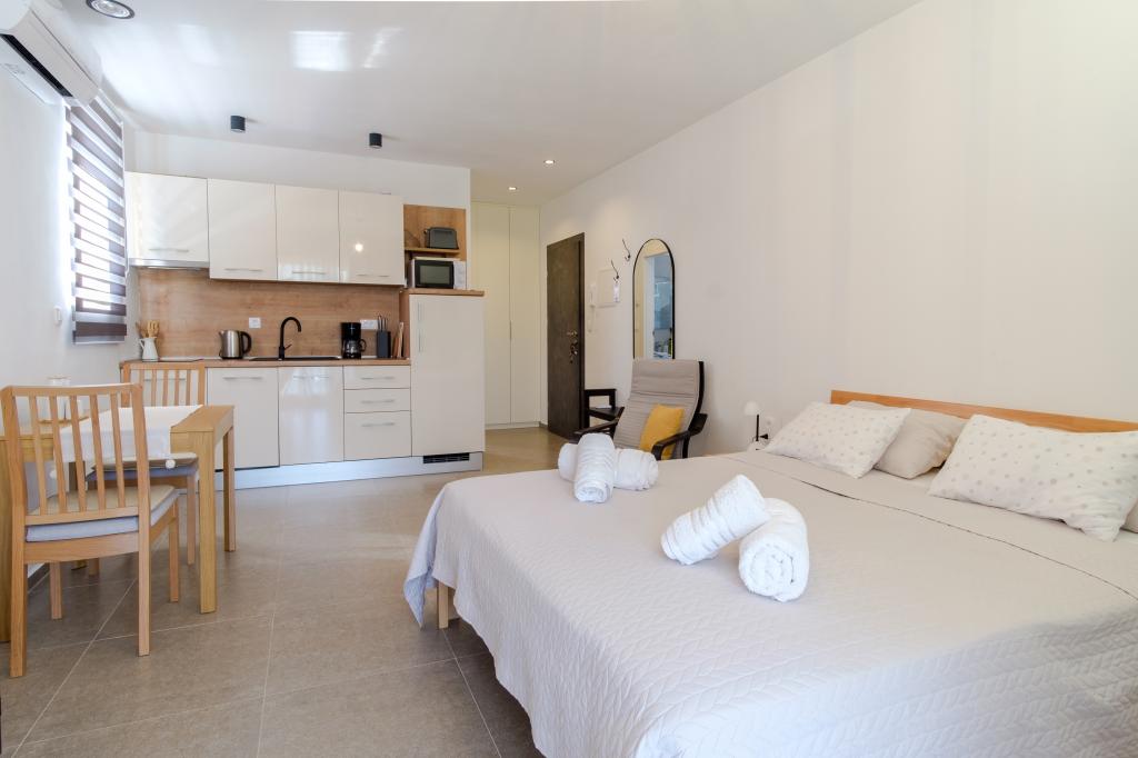 Ros til en flot nyistandsat studielejlighed. Det er udstyret med alt hvad du behøver på ferien. Værterne er venlige og imødekommende. Du får et sæt håndklæder til brug, og de efterlod os rene håndklæder foran lejligheden midt i vores ophold. Vi var med et barn, værten forberedte en ekstra barneseng, og lejligheden var rummelig nok med en barneseng til leg og ophold. Beliggenheden er fremragende, få minutter til stranden og centrum, men alligevel i fred og ro, ideel til en familieferie og en rolig ferie.