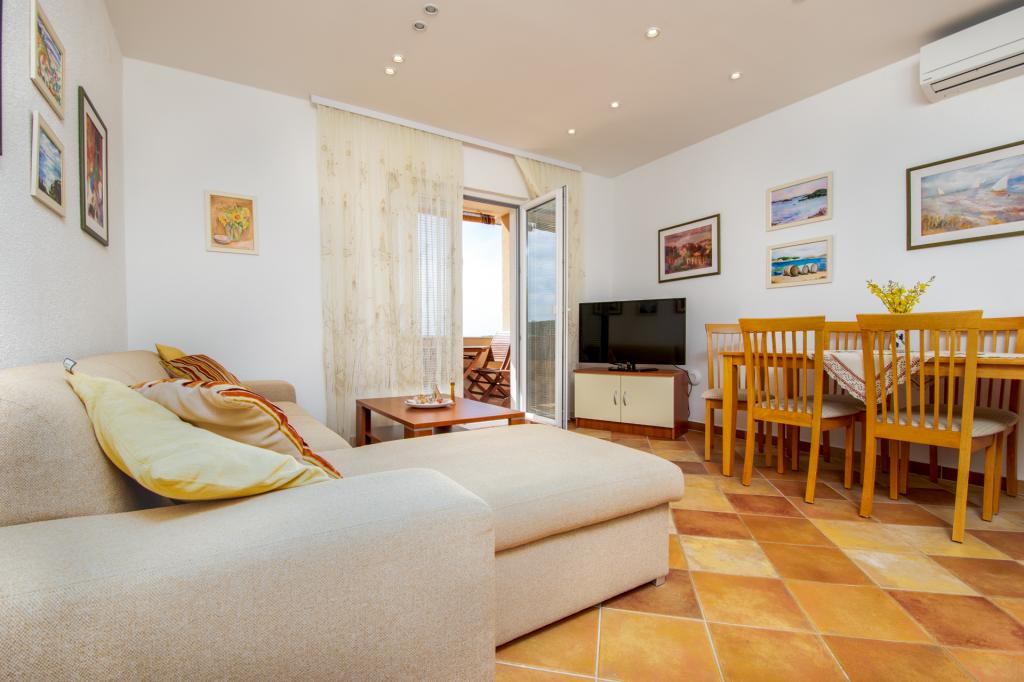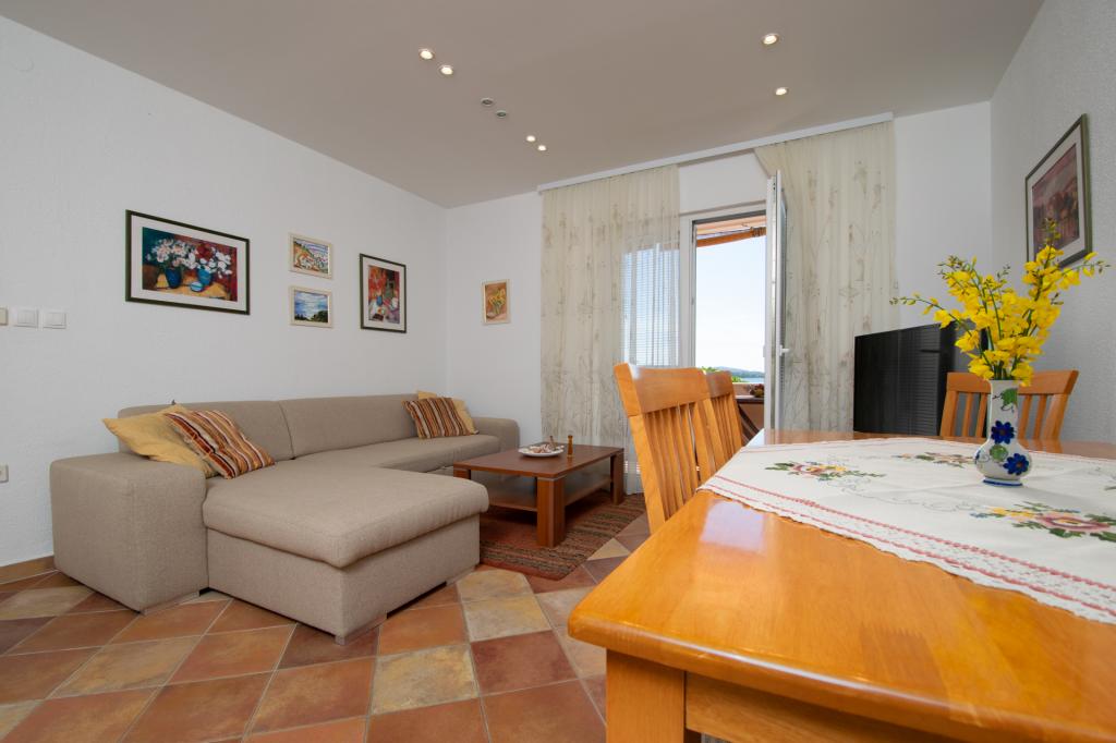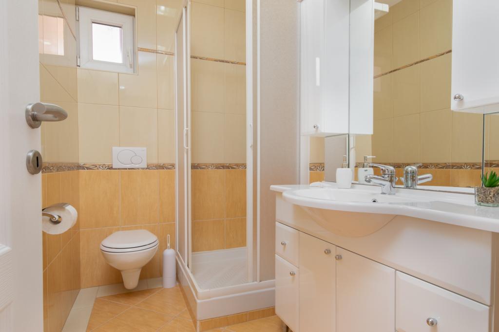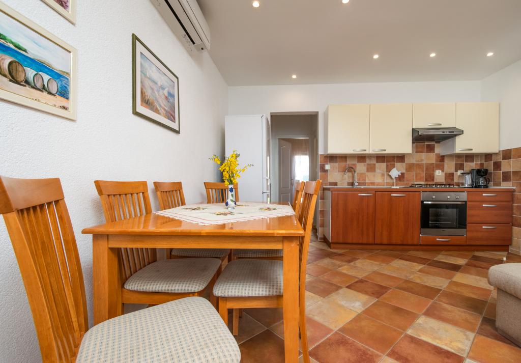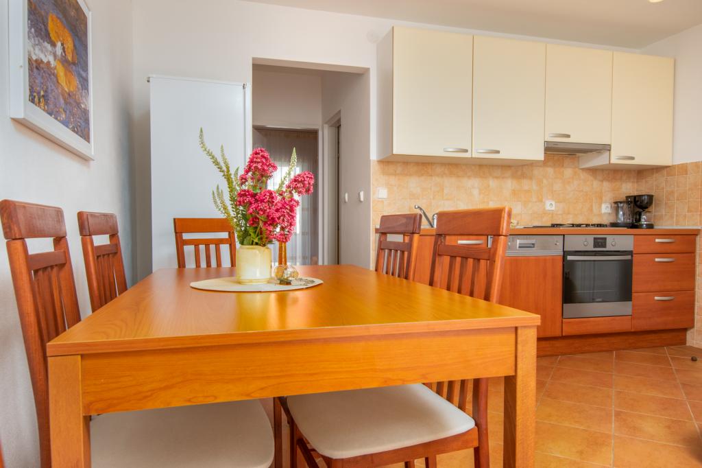 Min familie og jeg har allerede tilbragt vores ferie to gange i denne facilitet. Lejligheden er meget flot, ren, behagelig og vedligeholdt. Køkkenet har alt det nødvendige udstyr til tilberedning af måltider. Fra balkonen er der en smuk udsigt over havet. Omgivelserne er stille, så vi anbefaler det til familier og enhver, der ønsker en fredelig ferie. Fru Andreja, hun var altid til vores service, hun vidste, hvordan man skulle rådgive os, hvis vi havde brug for noget. Hun glædede også børnene med pandekager. Mest af alt kunne vi godt lide den indhegnede gårdhave, hvorfra det kun er et par skridt til en meget velholdt strand. I gården nød børnene skyggen og spillede bekymringsløse, mens forældrene lå ubekymret på liggestolene, som gæsterne også kan tage til stranden. Vi anbefaler!
