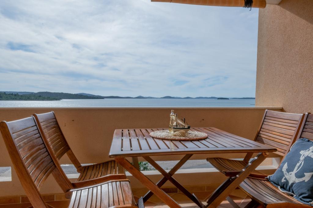 Luksuriøst indrettede lejligheder på hovedstranden i Lolić, i rolige omgivelser, har alle certifikatet Like home. Hver lejlighed optager en etage i huset og har sin egen indgang. Lejligheden består af entré til kufferter, stor stue med køkken, soveværelse, lille entre og badeværelse. Stuen fører til en stor loggia med udsigt over havet og romantiske solnedgange. Der er et teak bord og stole på loggiaen. I stuen er der en hjørnesofa, der kan laves om til to senge efter behov. Der er et stort LCD/IPTV. Køkkenet har tallerkener til 6 personer, opvaskemaskine, ovn, 3/1 gas, stort køleskab med fryser, kaffemaskine, spisebord til 6 personer. Rummet har aircondition og varme. Den indbyggede garderobe i gangen har et pengeskab. Badeværelset har brusekabine, radiator, hårtørrer. Soveværelset har en seng 160x200 og 90x200 med anatomiske madrasser og udgang til en lille loggia E. Sengetøj og håndklæder til badeværelset medfølger. Der er brætspil, nål og tråd, beskyttelse mod myg, strandstole, grill, bruser i gården
