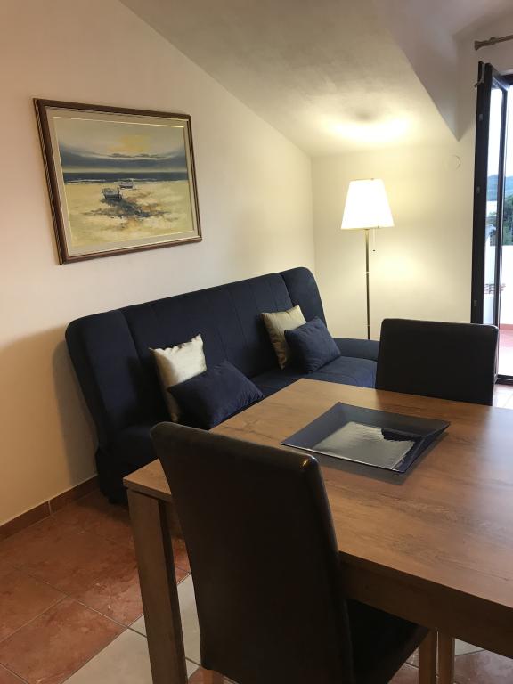Lejlighederne ligger ved siden af en fyrreskov og hovedstranden i Lolić 50 meter foran huset. Byens centrum ligger et par minutters gang derfra, som har alle de nødvendige faciliteter. Rummets rummelighed og enkelthed, fuld af lys og sol, med udsigt over havet, fra de store terrasser giver en følelse af positiv energi og afslapning. Alle lejligheder har aircondition Der er to lejligheder på hver etage og hver har sin egen separate udvendige indgang. Lejligheden til fire personer har to separate soveværelser (senge 160x200), en stor stue med køkken og et badeværelse. I stuen er der en sofa, der kan laves om til en seng (120x200) evt. Lejligheder til to personer har separat soveværelse (seng 160x200), stue med køkken og badeværelse I stuen er der en sovesofa, der kan bruges som seng 120x200. Studielejligheden ligger i husets stueetage og har to etager. Der er et soveværelse på første sal (seng 140x200) I stueetagen er der køkken, badeværelse og stor terrasse.