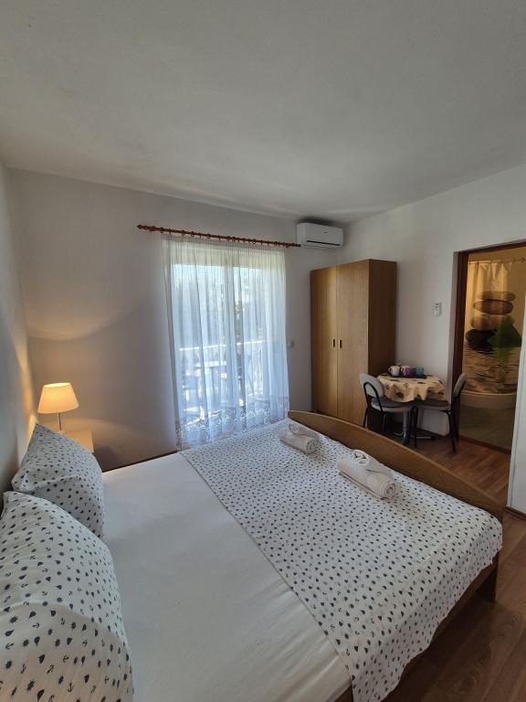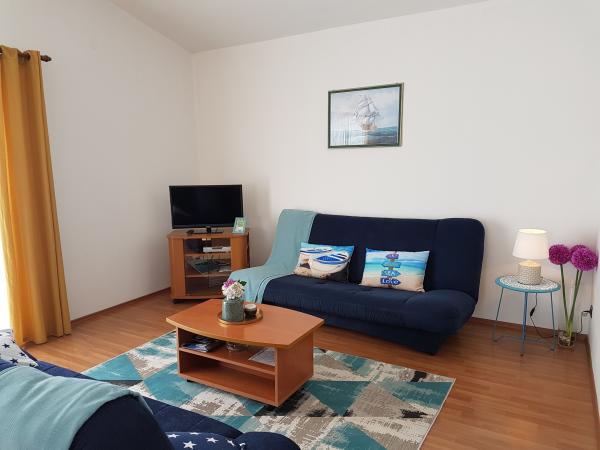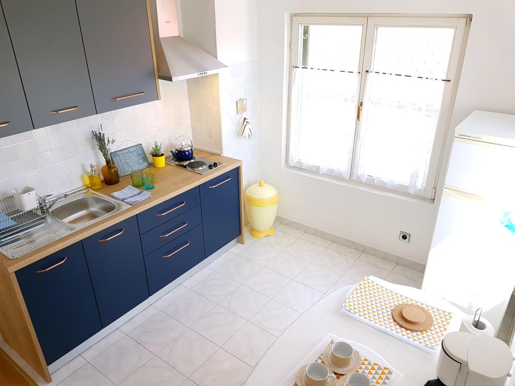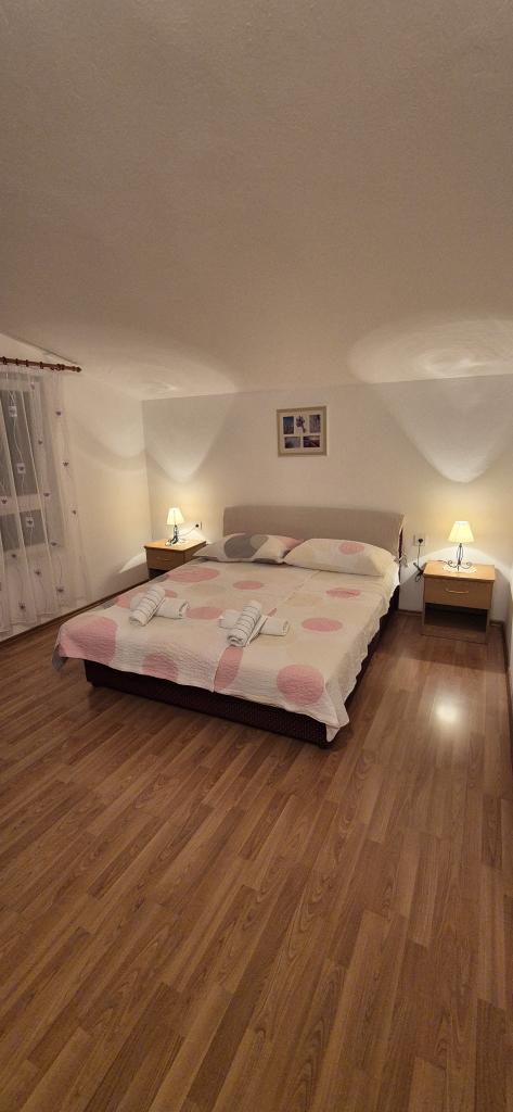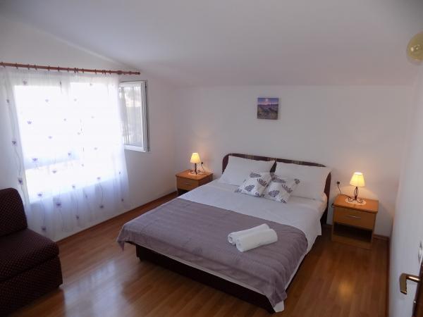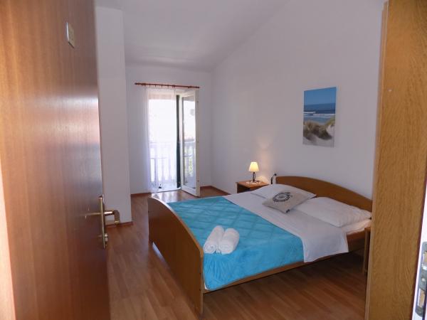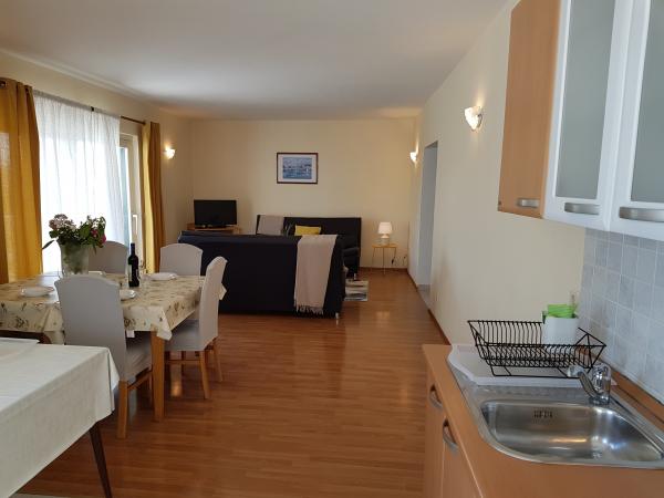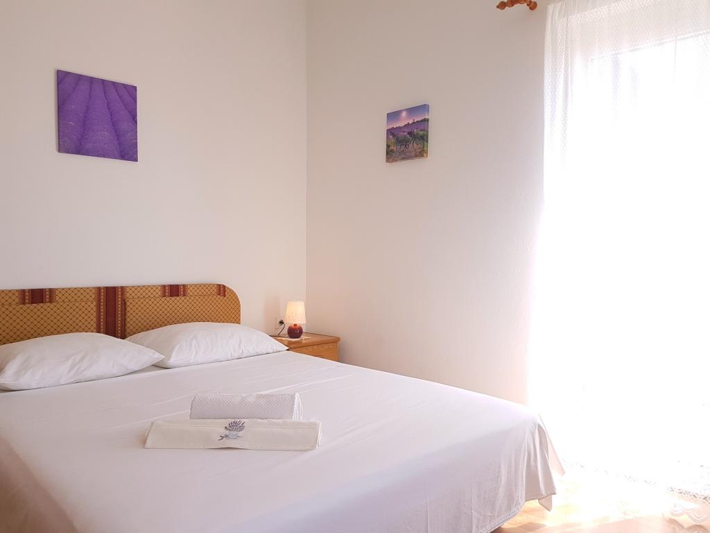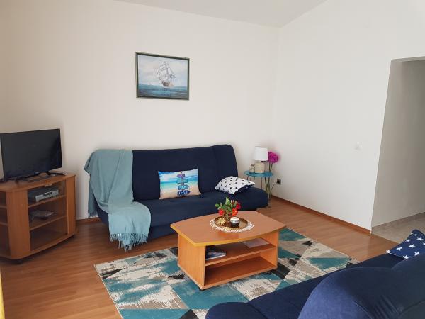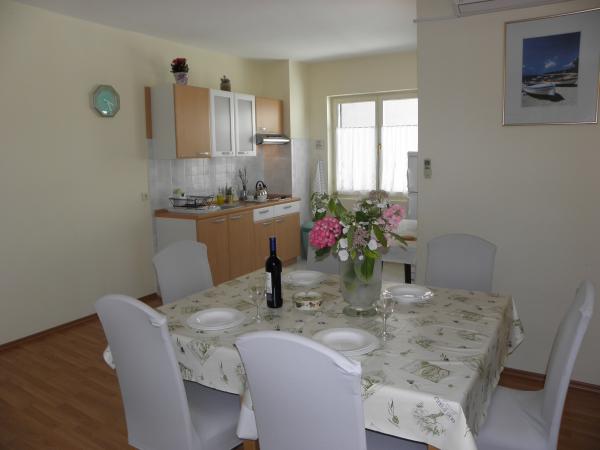 Lejlighederne Kristina ligger kun 150-200 m fra centrum og stranden. De er ret rummelige med adskillige faciliteter, der får gæsterne til at føle sig godt tilpas og hjemme. Alle tre lejligheder er fuldt udstyrede med køkken, stue (alle sofaer er udtrækssenge), aircondition og tv (satellitkanaler). To lejligheder på 90 m² (på 1. og 2. sal) er lyse og luftige med en 20 m² terrasse med udsigt over havet og har to rummelige soveværelser, og hvert værelse har et badeværelse og en ventilator. Lejligheden på 40 m² har en 5 m² balkon. Der er et soveværelse på 15 m² med badeværelse, aircondition og køleskab (på gangen). Gratis Wi-Fi er tilgængeligt i hele ejendommen, og i gangen ved indgangen er der et lille bibliotek (en hylde med brochurer, bøger på flere fremmedsprog, magasiner). Der er en stor parkeringsplads foran huset. For reservationer, betingelser og mere, se Bemærkninger. Reservationskalenderen er opdateret. Vi ser frem til din ankomst!
