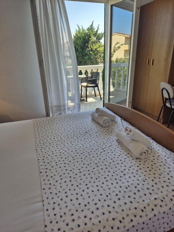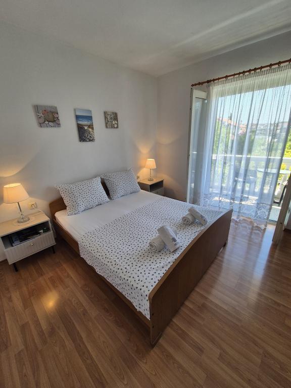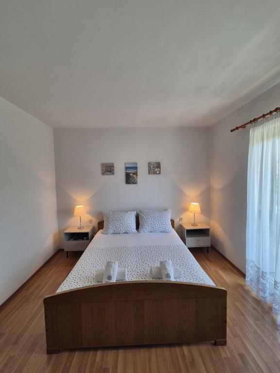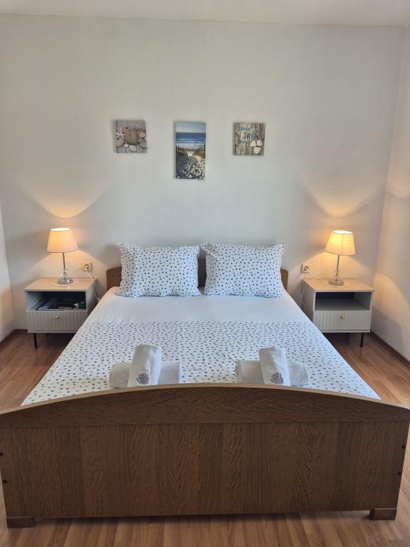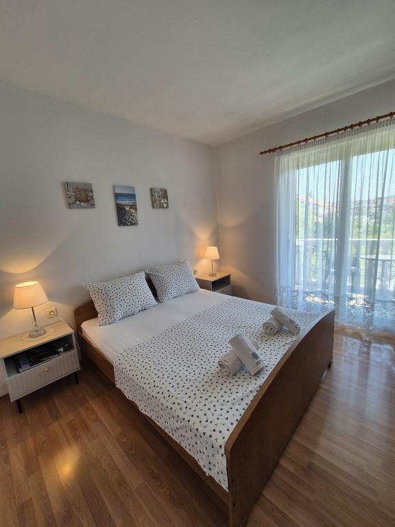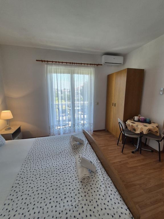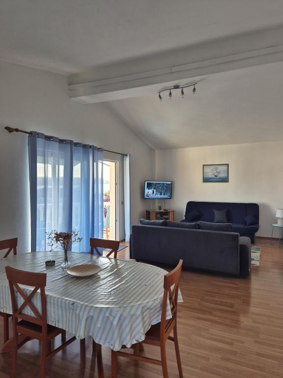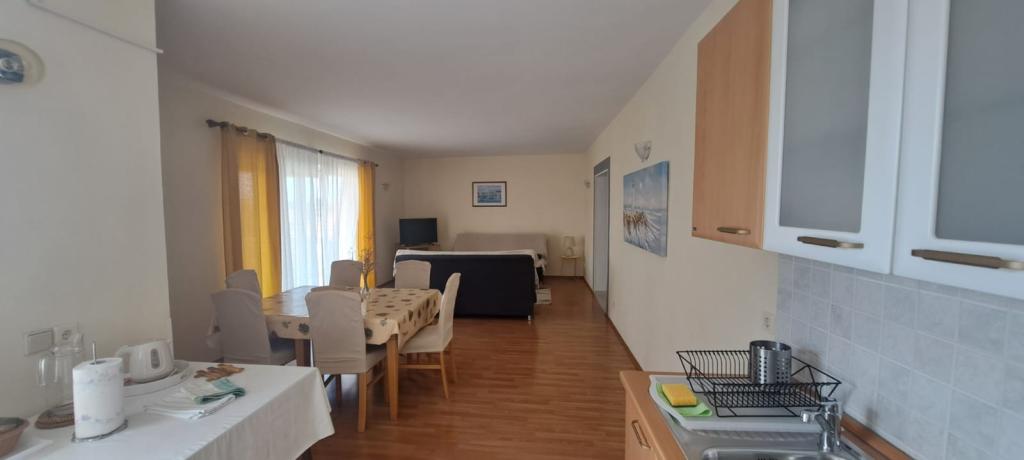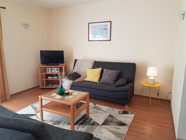 Lejlighederne Kristina ligger kun 150-200 m fra centrum og stranden. De er ret rummelige med adskillige faciliteter, der får gæsterne til at føle sig godt tilpas og hjemme. Alle tre lejligheder er fuldt udstyrede med køkken, stue (alle sofaer er udtrækssenge), aircondition og tv (satellitkanaler). To lejligheder på 90 m² (på 1. og 2. sal) er lyse og luftige med en 20 m² terrasse med udsigt over havet og har to rummelige soveværelser, og hvert værelse har et badeværelse og en ventilator. Lejligheden på 40 m² har en 5 m² balkon. Der er et soveværelse på 15 m² med badeværelse, aircondition og køleskab (på gangen). Gratis Wi-Fi er tilgængeligt i hele ejendommen, og i gangen ved indgangen er der et lille bibliotek (en hylde med brochurer, bøger på flere fremmedsprog, magasiner). Der er en stor parkeringsplads foran huset. For reservationer, betingelser og mere, se Bemærkninger. Reservationskalenderen er opdateret. Vi ser frem til din ankomst!