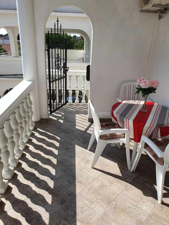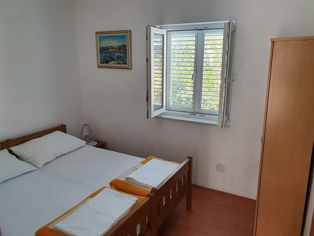 Lejligheder PAVE er beliggende i et nyt og moderne hus. Ejendom med 2 lejligheder med aircondition på første sal. Begge lejligheder er fuldt udstyrede og møblerede. Hver lejlighed har en overdækket terrasse, en stue med køkken med sovesofa, et badeværelse, et soveværelse og en udendørs bruser. Lejlighederne ligger i centrum af Pirovac, få min. gang til Lolić-stranden på en rolig beliggenhed væk fra trafik og støj. Der er meget skygge på stranden, så den er ideel til familier med små børn. Inden for 100 m fra lejligheden er der butik, marked, fiskemarked, posthus, restaurant, hæveautomat, klinik, apotek, sportsbaner (fodbold, basketball) og flere faciliteter for børn. For enden af Pirovac-bugten er der medicinsk mudder, der primært er effektivt til behandling af reumatiske og andre lidelser, samt til kosmetiske formål. Der er to nationalparker i nærheden af Pirovac - Kornati National Park, Krka National Park og Vrana Lake Nature Reserve.