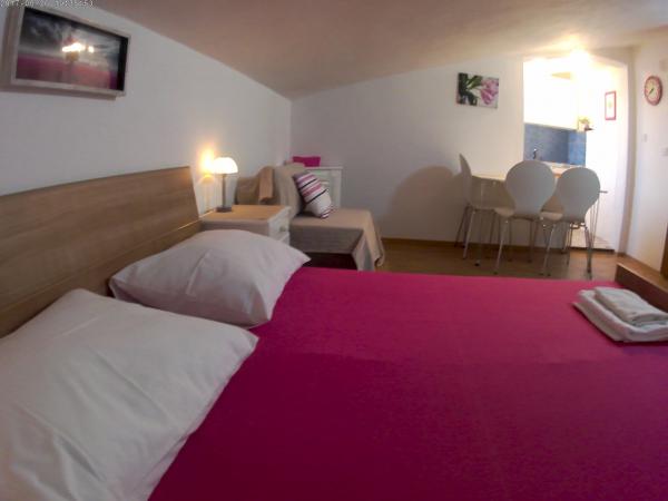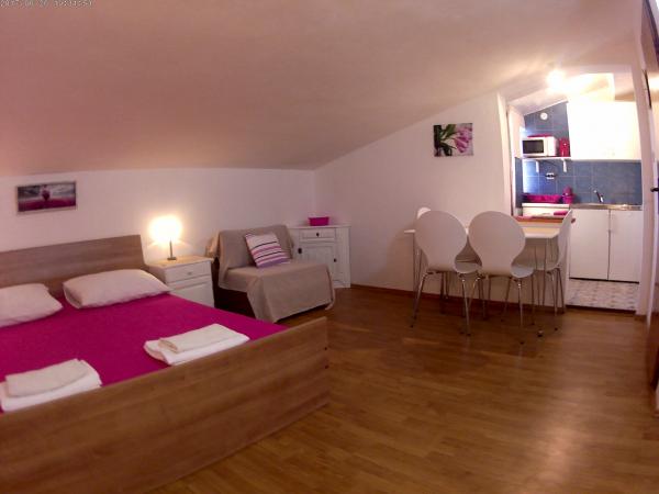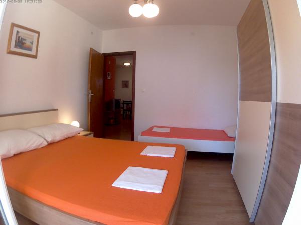 Turistskat er inkluderet i prisen. Dokumentation for reservationsbekræftelse ved reservationHvordan disse vidunderlige mennesker tog imod os, kan jeg ikke beskrive med ord. De er vidunderlige, venlige og altid tilgængelige. Vi ankom ikke engang godt, værten, hr. Neven, bærer 2 kufferter op til lejlighedens første sal som en ung mand og tilbyder figner. Også hendes vidunderlige og kære kone, Snježana. Lejligheden er udstyret, som man ville gøre derhjemme, en masse service, håndklæder. Pæn og ren som et apotek. Stranden, centrum og Plodine-butikken ligger cirka 10 minutters gang væk. Vi er meget tilfredse, vi kommer helt sikkert igen.