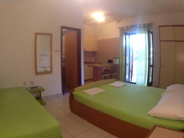Studiet er rent, ryddeligt og udstyret med alt nødvendigt for en behagelig ferie. der er nok tallerkener, glas, viskestykker, håndklæder og alle andre væsentlige småting, der gør opholdet mere behageligt... sengen er den mest komfortable af alle de lejligheder, vi har boet i indtil videre. fredelige og rolige omgivelser. tæt på strand, centrum og butikker. sikret parkering. kære og venlige værter! rene 10!