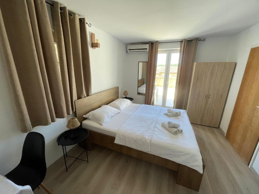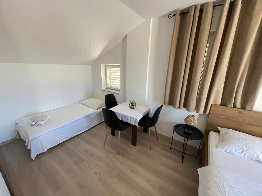 Lejlighederne er beliggende i Pirovac, på hovedstranden Lolić. Stranden er omkring 50 meter væk, og centrum er en 5-minutters let gåtur. Der er en grill i gården, som I kan benytte, og I har mulighed for at sidde og hygge.
