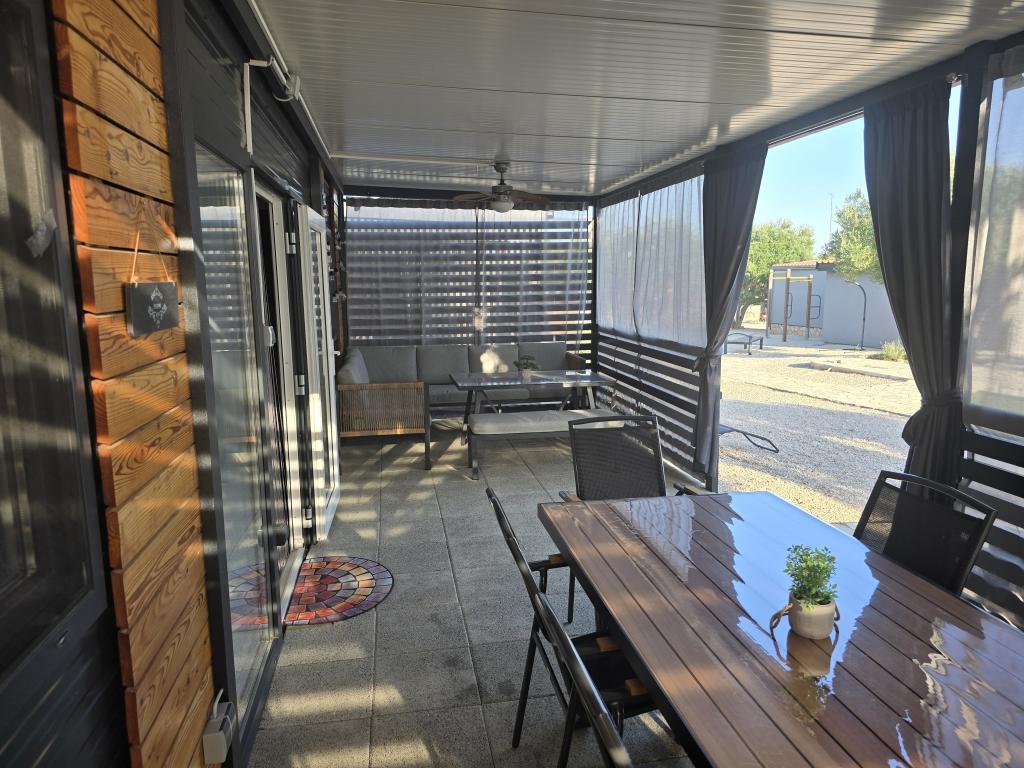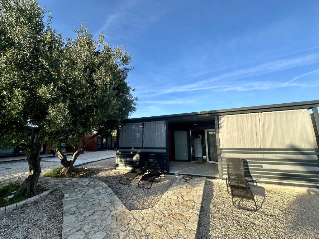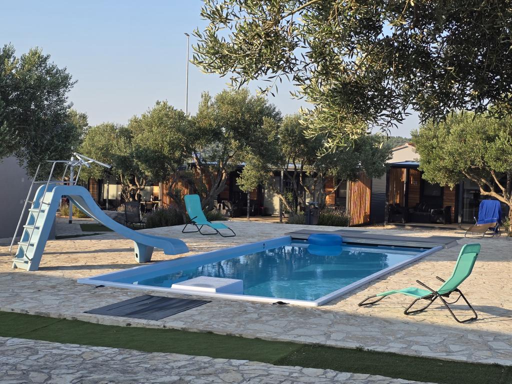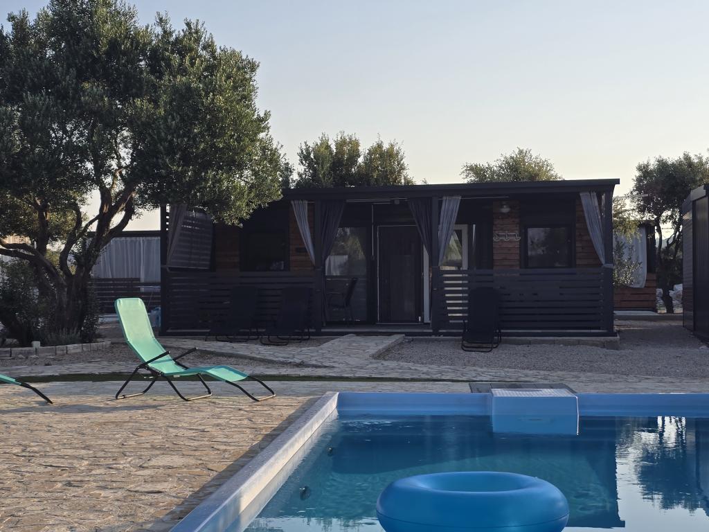 Mobile Home Maslina – Din fredelige oase ved havet. Velkommen til Mobile Home Maslina, et moderne indrettet mobile home beliggende i en rolig del af Pirovac, kun 200 m fra stranden. Huset har plads til op til 5 personer og har to soveværelser med i alt 4 senge, en stue med en sovesofa, et udstyret køkken og et badeværelse. Nyd den store overdækkede terrasse med udsigt over poolen – perfekt til morgenkaffe eller aftenafslapning. Gæsterne har også adgang til en parkeringsplads. Mobile Home Maslina er ideel til en familieferie, fred, natur og nærhed til havet. Oplev Dalmatiens gæstfrihed og book din ferie i dag!