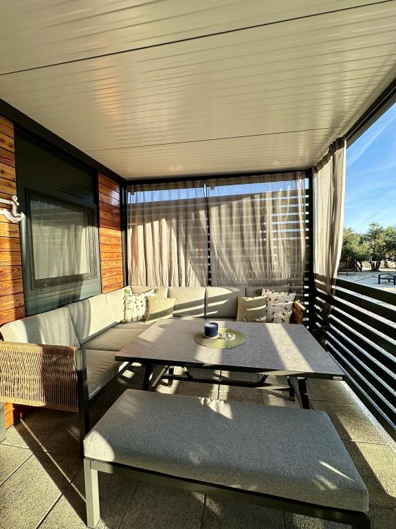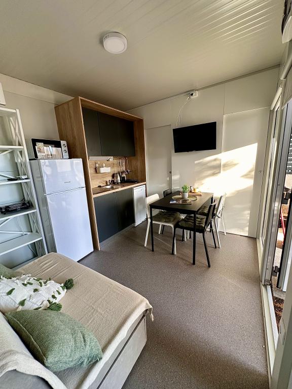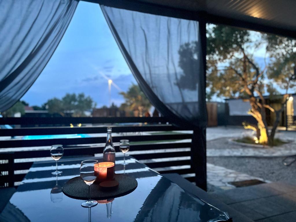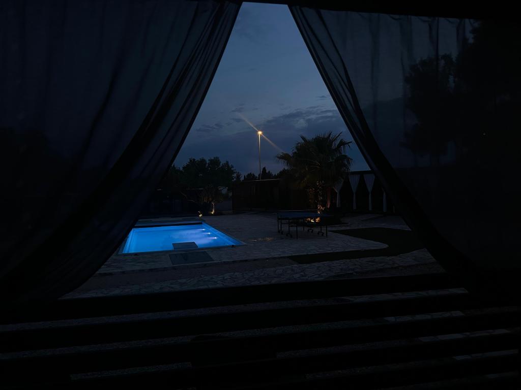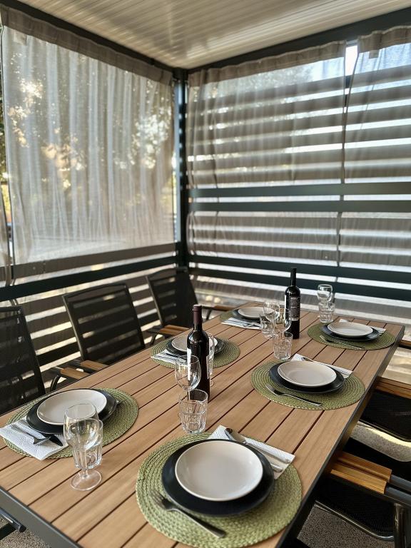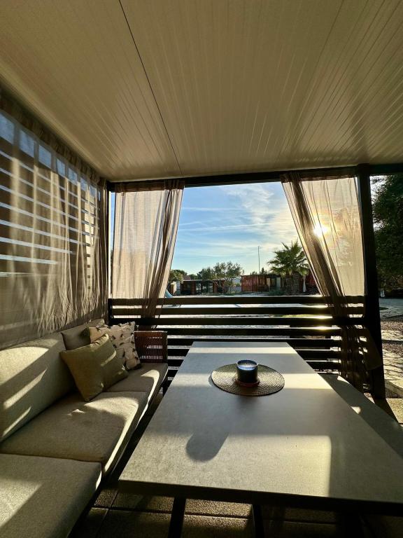 Mobile Home Maslina – Din fredelige oase ved havet. Velkommen til Mobile Home Maslina, et moderne indrettet mobile home beliggende i en rolig del af Pirovac, kun 200 m fra stranden. Huset har plads til op til 5 personer og har to soveværelser med i alt 4 senge, en stue med en sovesofa, et udstyret køkken og et badeværelse. Nyd den store overdækkede terrasse med udsigt over poolen – perfekt til morgenkaffe eller aftenafslapning. Gæsterne har også adgang til en parkeringsplads. Mobile Home Maslina er ideel til en familieferie, fred, natur og nærhed til havet. Oplev Dalmatiens gæstfrihed og book din ferie i dag!
