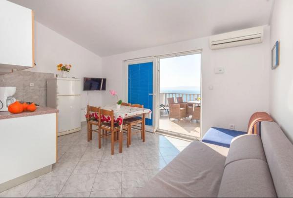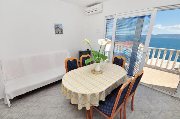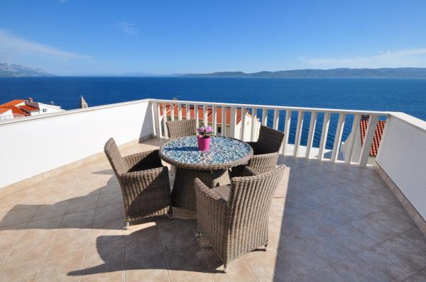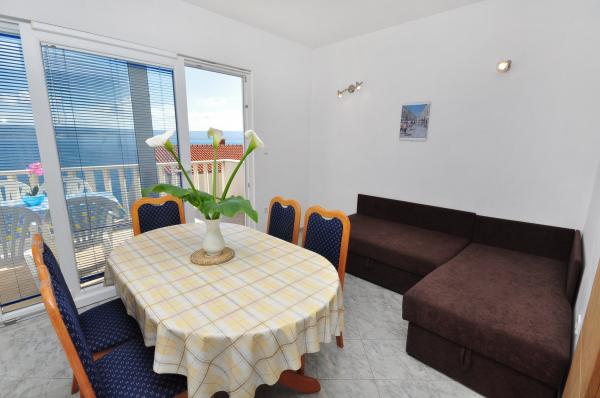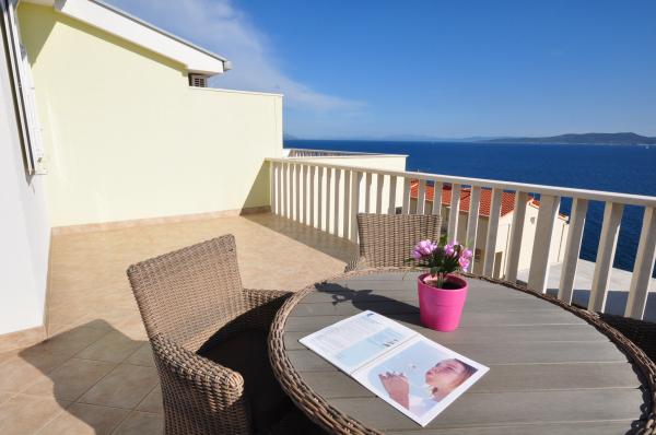 Værelse meget ren, ejer virkelig bekymrer sig om orden og renlighed. Under hele plejet ophold, hvis alt var okay. I begyndelsen venter os en flaske vin. Så blev vi behandlet til druer fra hendes have, kager bagt af hende. Meget flot i almindelighed. Placering med fantastisk udsigt over havet og bjergene, meget roligt kvarter. Til 4 minutter fod. Hvis jeg valgte at Kroatien er jeg absolut der. Varmt anbefale.