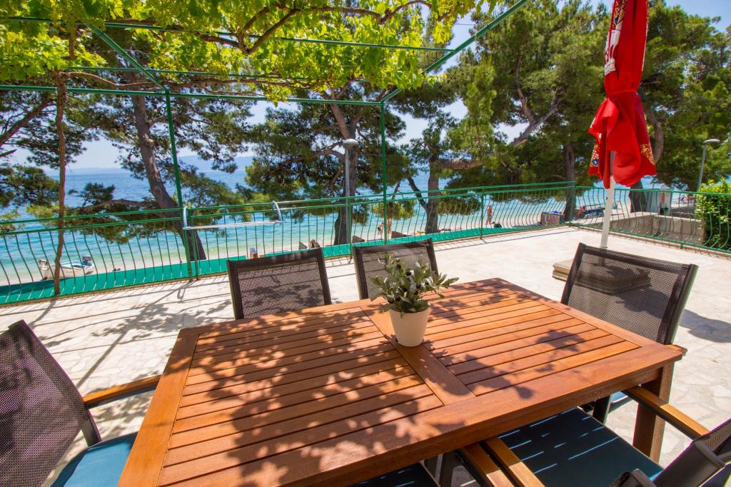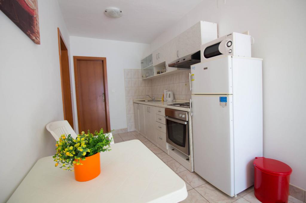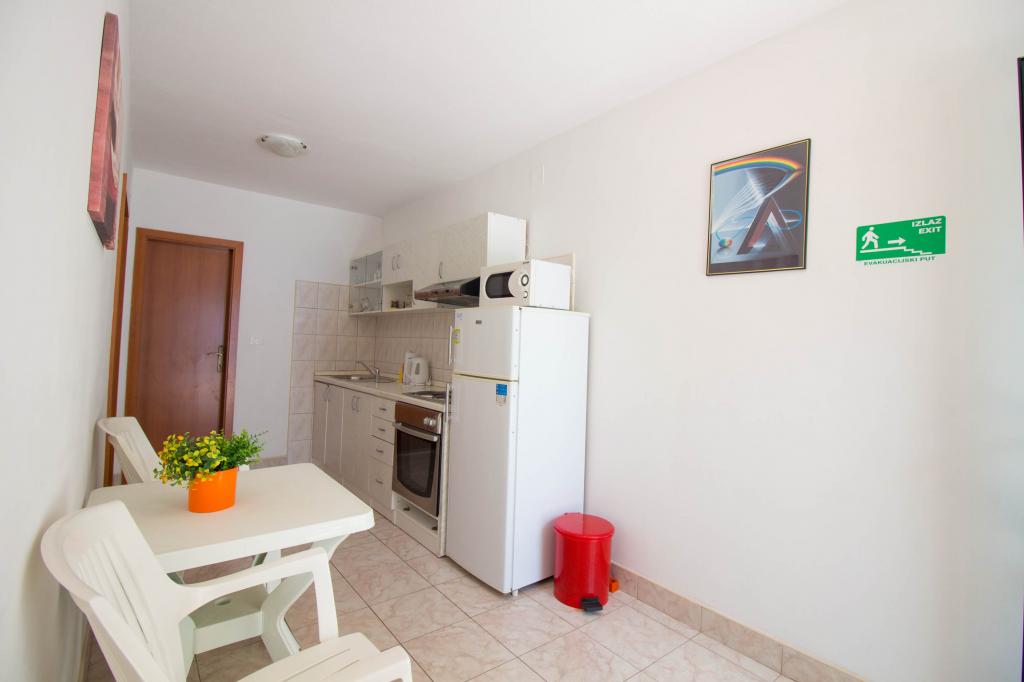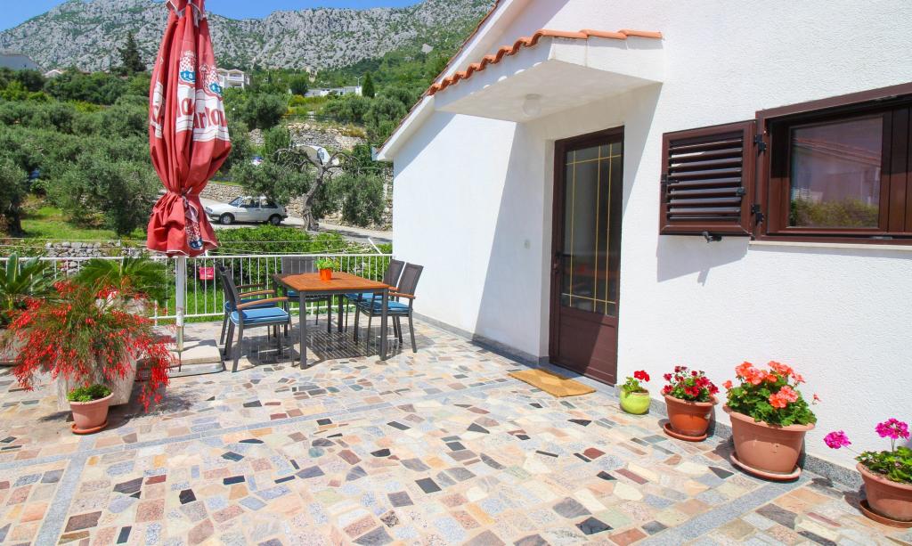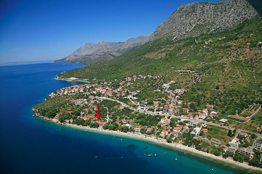 Kosovic II Apartments er beliggende på en familieejendom i Podaca kendt for sin store turisttradition. Afstand fra havet og stranden er kun 10 meter væk fra skarer og motorveje, hvilket gør denne placering meget interessant for små børnefamilier. Stranden er rullesten med masser af naturlige skygger, der gør fyrretræer. Langs stranden er der en nybygget promenade 5 km lang, ideel til aftenvandring og afslapning, men også for turister, der foretrækker en mere aktiv ferie med løb, rulleskøjter og cykling. Alle 3 lejligheder har separate indgange, aircondition og WIFI. Lejligheden har 14 senge og 2 ekstra senge. Fem parkeringspladser er sikret inden for ejendommen omkring huset på det angivne sted. Ejendommen har mere end 200 oliventræer og en rolig familiedrevet Mendi-restaurant med en tradition på over 35 år. Den grillede og skaldyrsrestaurant tilbyder en række pizzaer.