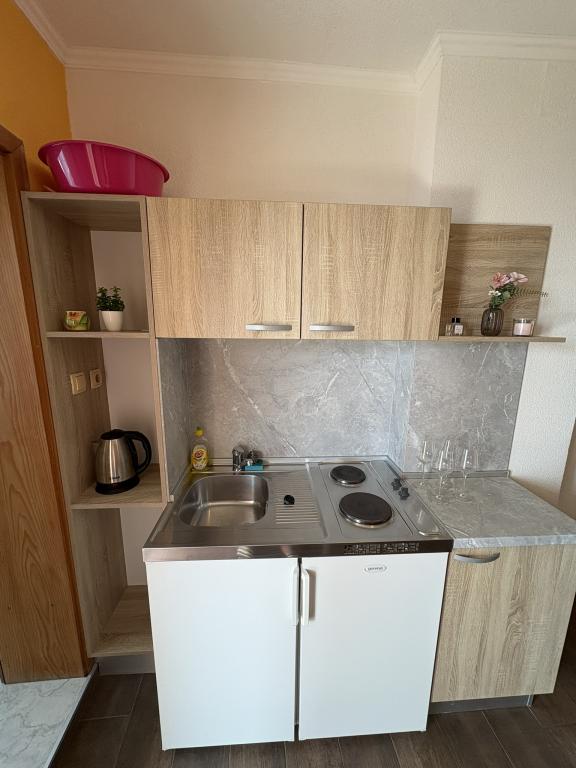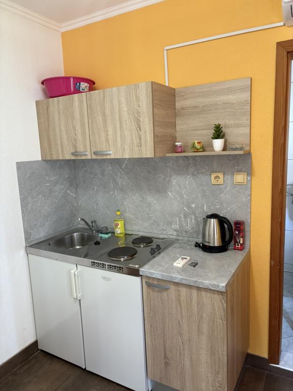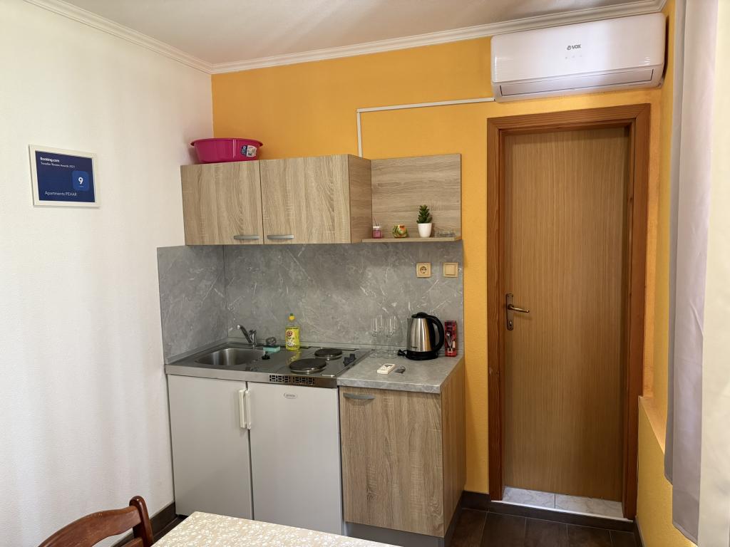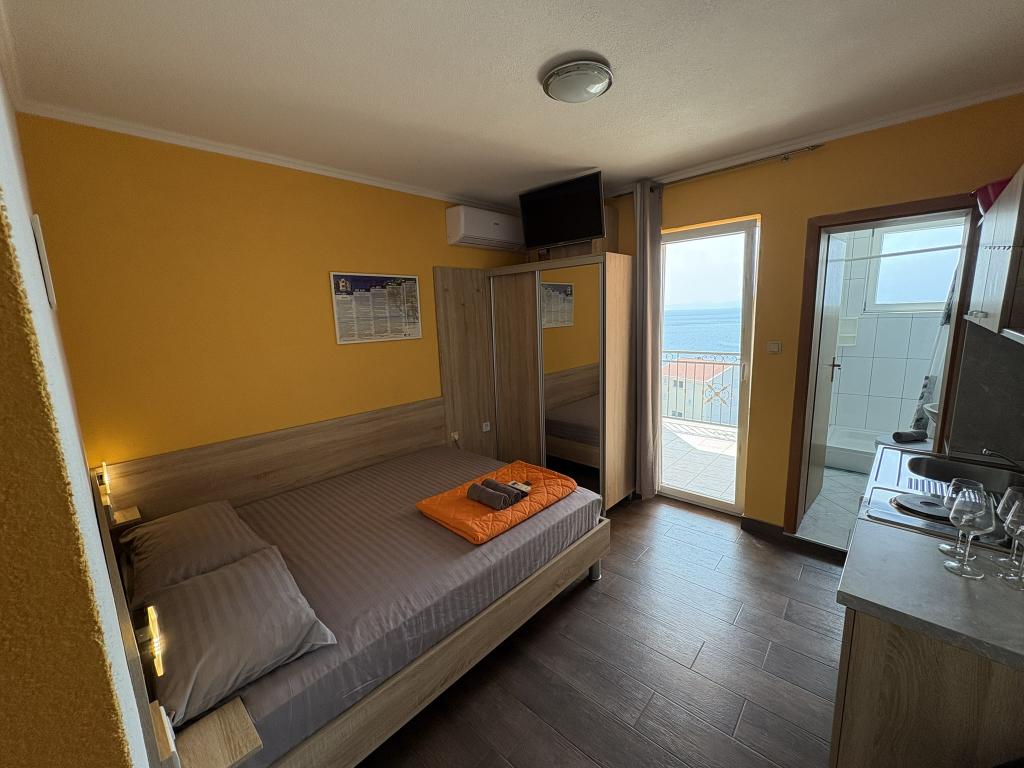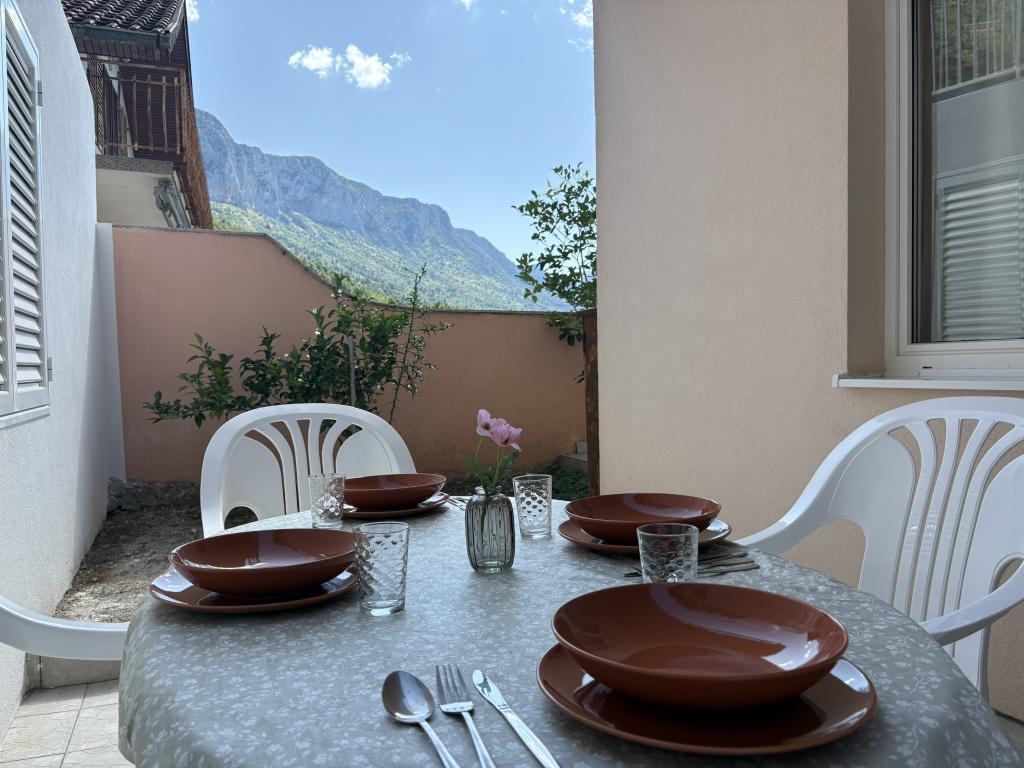Makarska Riviera, Podaca. 6 studiolejligheder og 3 lejligheder beliggende i Podaca, 70 skridt fra havet. Adgang til stranden uden trin, 200 meter væk. Bymidte, butik, posthus, børnepark og busstation ligger kun 200 meter væk. Gratis Wi-Fi og aircondition i hver lejlighed.