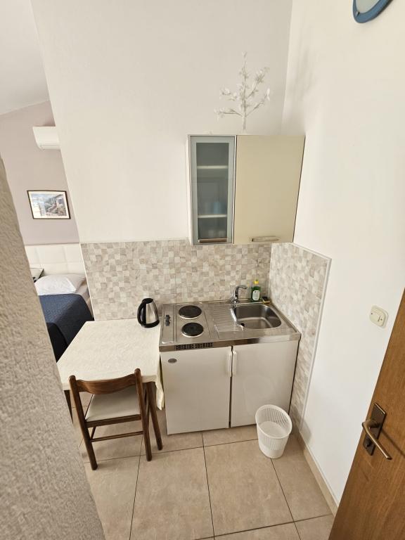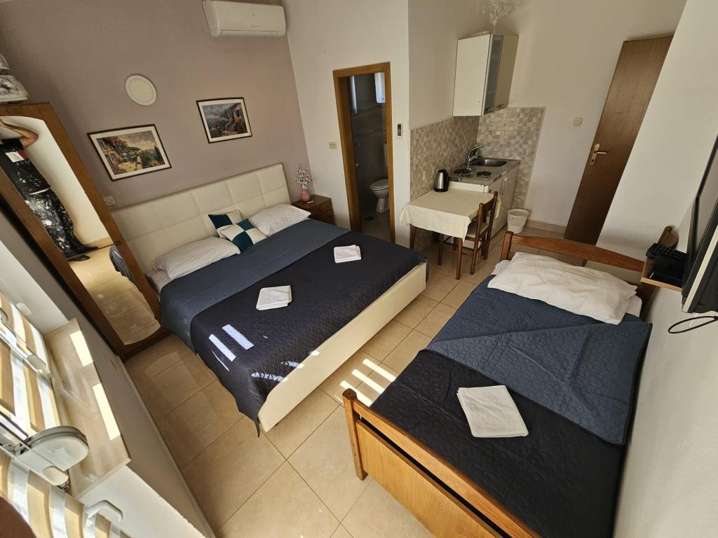 Huset er beliggende i centrum af Podaca, i en attraktiv beliggenhed, som ligger ud legeplads og park. Overfor huset er en busstation, restauranter, butikker, markeder. For dem, der ønsker at slappe af og have en god tid, vores hus er det ideelle valg!