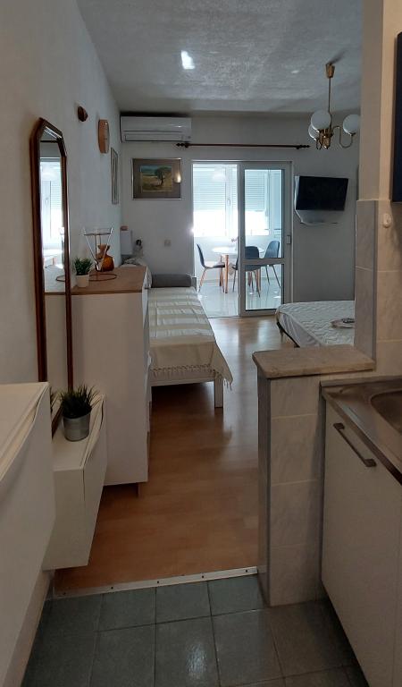 Indkvartering er pæn, ren, tæt på 2 smukke strande, tæt på markedet med en parkeringsplads. Dejligt og roligt sted at slappe af med børn. Fru Višnja er meget behagelig og venlig. Ros!