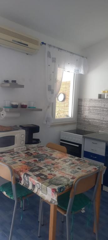 I den rolige bugt Čaklje (Podgora) ligger et hus med lejligheder (ČAUSEVIĆ) i første række til havet. Stranden kan nås ved at krydse hovedvejen - på 1 minut. Lejlighederne på anden sal blev bygget i 2005, og lejligheden på første sal i 1999. Alle tre lejligheder har store terrasser - ca. 12 m2. Lejlighederne har aircondition. Særtilbud på weekendhus a-4. Velegnet til unge par, hvis I kan lide atmosfæren af antikviteter. Der er huse i området, der er over 100 år gamle. Bygden hedder Vruja, og husets navn er Letišče. Der er parkering til to biler.
