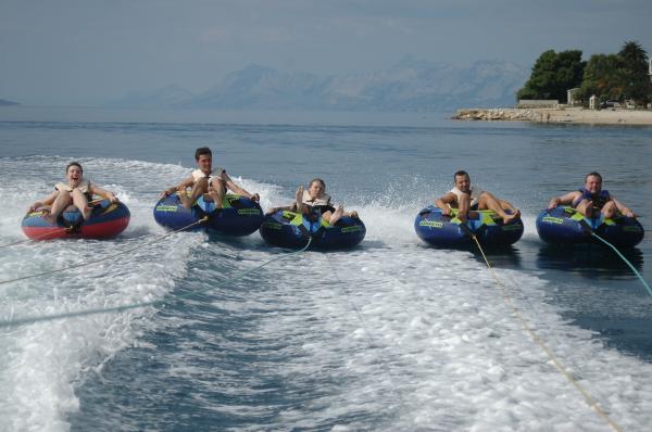 Turistskat er inkluderet i prisen.Vi tilbyder en mulighed for at leje en båd Quick Silver 630 med motor 150 hk Suzuki, 5m båd med motor 5HP, vandcykler, jet-ski, paragliding, banan forlystelser, rør, store mable, vandland. For vores gæster, at prisen på vandsport er 20% mindre.