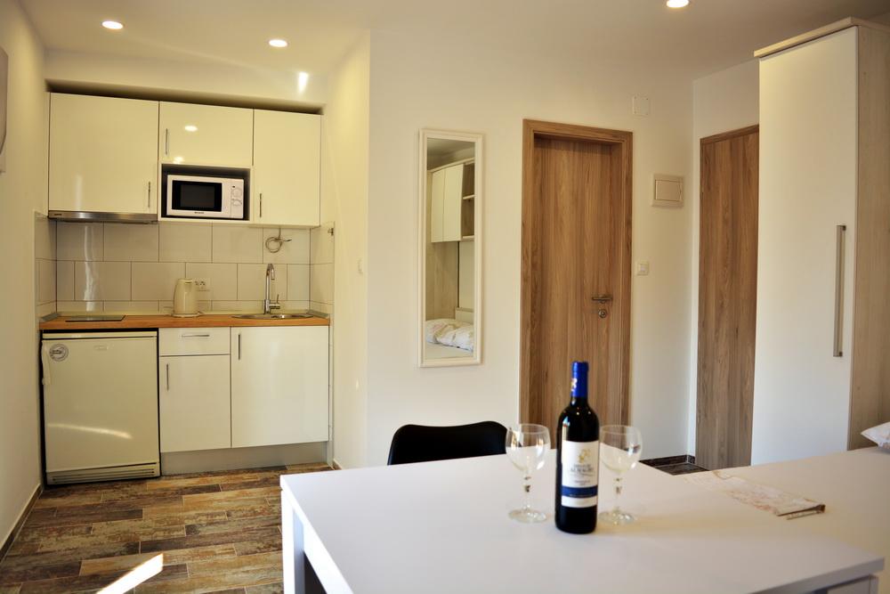 Vi krydsede næsten hele Kroatien, indtil vi ankrede op i Podgora, hvilket passer os på grund af dets beliggenhed og landsbyens størrelse. Vi prøvede både hoteller og privat indkvartering, indtil vi stødte på dette lejlighedshus i Jure. Vi har været der ti gange i år. Vi blev indkvarteret i 2+2, 2+1 og i et studio til to, hvor der er mulighed for en ekstra seng til et barn. Lejlighederne er fuldt udstyrede, vi manglede ikke noget, der er endda en vaskemaskine til rådighed, hvilket ikke er standard alle steder. Ejeren og hans familie er seje... de vil rådgive og hjælpe. Jeg anbefaler at prøve