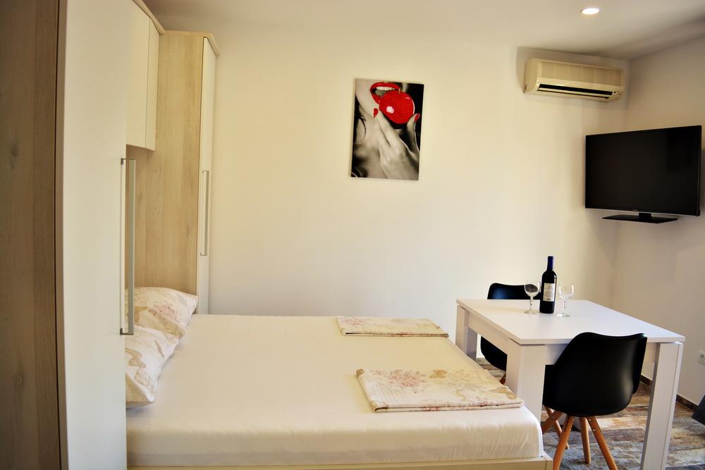 Lejligheder Jure tilbyder 3 lejligheder på tilbud: lejlighed A6 1 til 7 personer, A2 2 til 4 personer og S2 til 2 personer. Alle lejligheder er moderne møbleret og møbleret, komfortable og overkommelige og har alt hvad du har brug for til din komplette ferie. A6 1 har 140 m2, med 3 værelser og en stor stue og sovesofa. Det er yderst velegnet til familier med børn. Alle lejligheder har: køkken, spisestue, badeværelse, parkering, Wi-Fi, aircondition, mens den største lejlighed A6 1 har aircondition i hvert værelse og har 4 badeværelser. Kæledyr er ikke tilladt, rygning forbudt i lejligheden (balkon og udvendige værelser - tilladt). Vi står til din rådighed for spørgsmål eller forbehold.