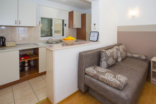 Turistskat er inkluderet i prisen.Jeg anbefaler Lednić-lejlighederne til folk, der ønsker fred. Stranden er smuk, havet er rent, der er ingen folkemængder. Værterne er kulturelle og diskrete. Som en ulempe vil jeg påpege, at vi ikke var placeret i byen Podgora, som man ville forstå ud fra den givne adresse, men i byen Čaklje. Stien til stranden er ret stejl, og hvis man har små børn, kan det være lidt ubelejligt at klatre fra stranden til lejligheden.