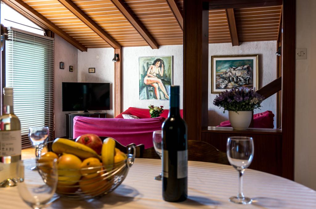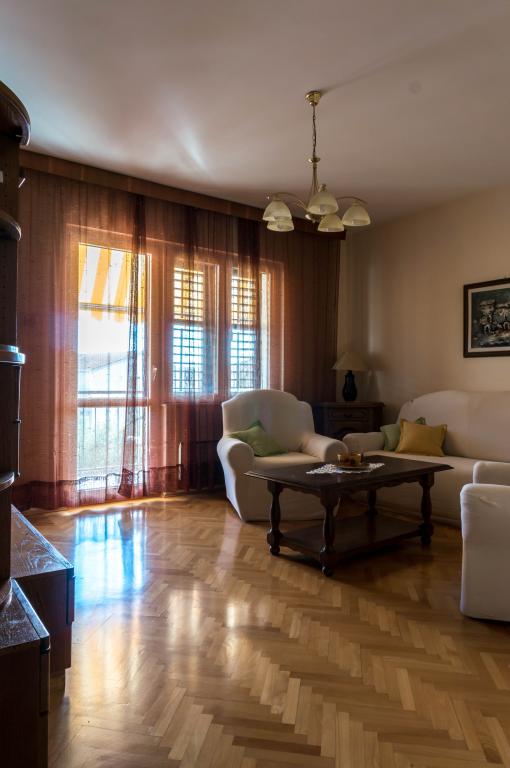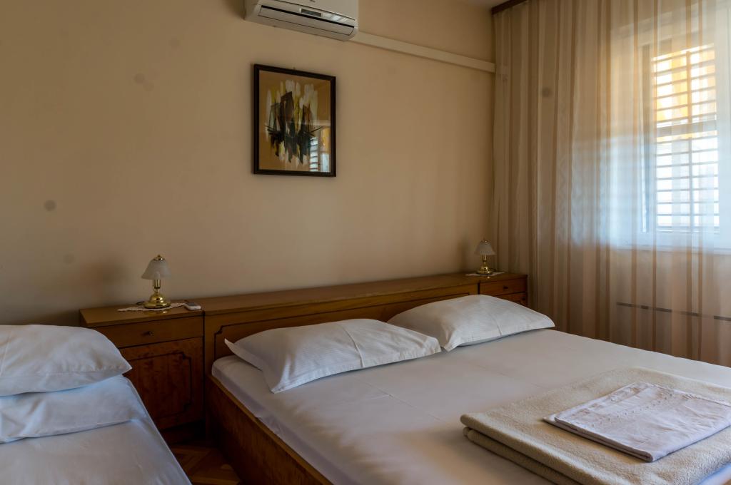 Lejlighederne er beliggende i et familiehus i centrum af Podgora, 50 meter fra den centrale strand. Inden for en radius af 100 meter er der restauranter, caféer, butikker, posthus, apotek, læge, børnepark... Lejlighederne har egen parkeringsplads som er inkluderet i prisen. Alle afgifter er inkluderet i prisen. Lejlighederne har deres eget gratis ubegrænsede trådløse internet og satellit-tv. Lejlighederne har aircondition (alle værelser). Apartment 6+2 DeLux er en luksuriøst indrettet to-etagers lejlighed. På første sal er der stor stue, køkken, spisestue, et soveværelse, badeværelse, toilet, stor terrasse med siddepladser og havudsigt. På anden sal, der er adgang til via en indvendig trappe, er der to store soveværelser med private badeværelser. Lejlighed 4+1 Classic er en stor lejlighed med to soveværelser, et badeværelse, en stue, et køkken med spiseplads og en stor altan. Vi står til din rådighed for al information via e-mail eller mobiltelefon.