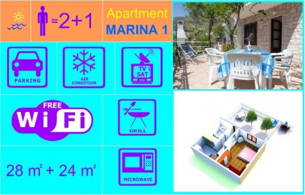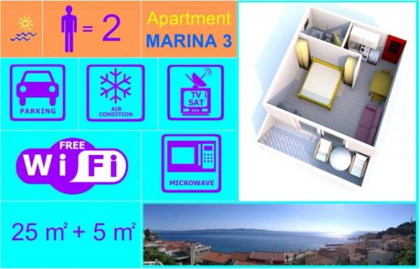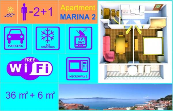 Alle lejligheder er sydvendt med balkon eller terrasse. Seaview. Huset ligger i anden række fra havet, i en rolig del af Podgora, i umiddelbar nærhed af centrum, havet, stranden og alle de store attraktioner. Hver lejlighed er udstyret med aircondition, gratis internetadgang, satellit-tv, mikroovn, kedel og andet nødvendigt udstyr. Hver lejlighed har én parkeringsplads ved siden af vores hus.