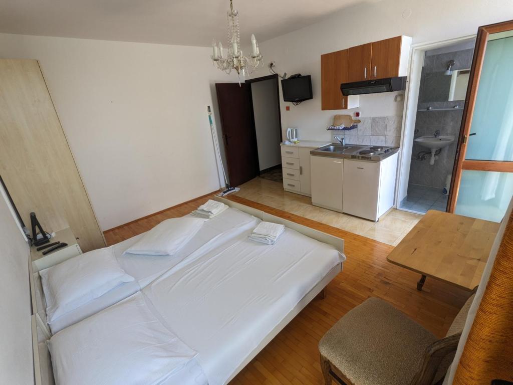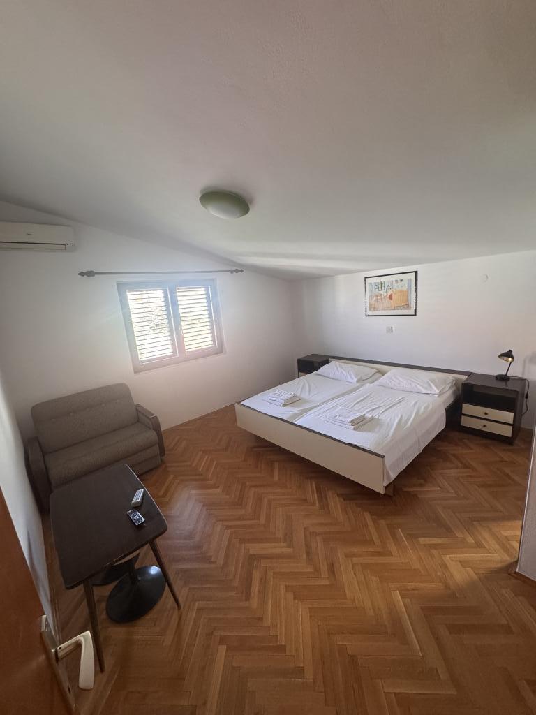Vores familiehus ligger kun få meter fra hjertet af Podgora. Inden for gåafstand finder du Podgoras smukkeste strande, omgivet af fyrretræer, der beskytter dig og dine børn mod den brændende sol.