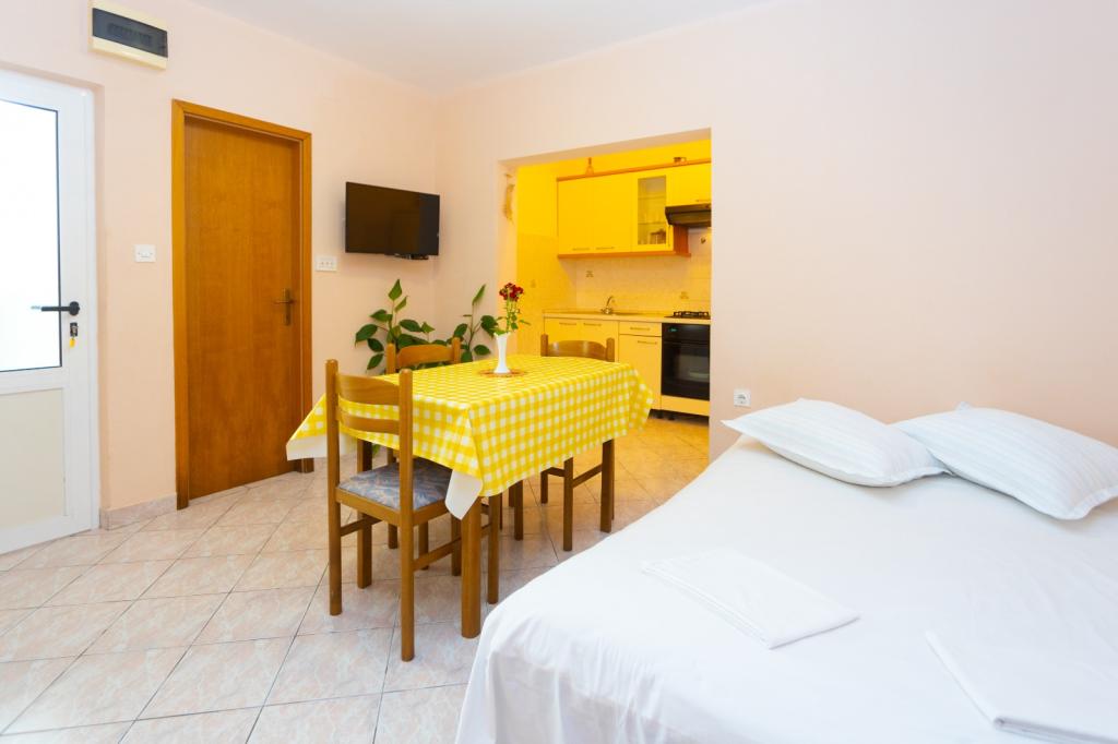 Apartments Vranješ er centralt beliggende i Podgora, i umiddelbar nærhed af købmandsforretninger, restauranter og barer. Bygningen byder på udsigt over den gamle havn, og gæsterne har gratis trådløs internetadgang og gratis parkering. Der er 2 strande kun 2 minutters gang fra ejendommen. Alle lejligheder er møblerede og har aircondition og omfatter LCD-tv, eget badeværelse og køkken samt balkoner og rummelige terrasser. Gæsterne kan benytte grillen i gården. Faciliteter til vandsport, parasailing og dykning er tilgængelige kun 100 meter fra bygningen. Det er 3 km til Tučep og 8 km til Makarska. Den nærmeste indgang til motorvejen ligger i nærheden af Zagvozd og ligger 30 minutters kørsel derfra