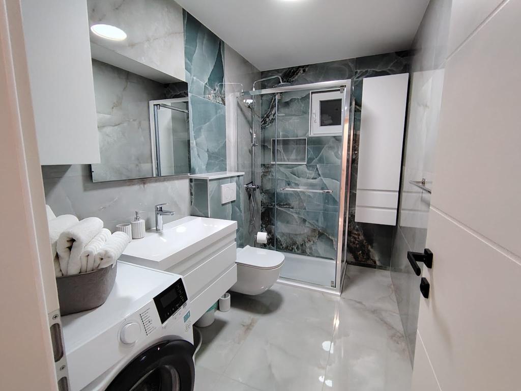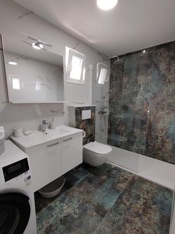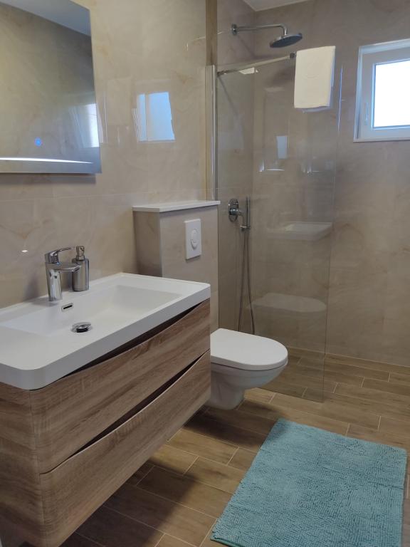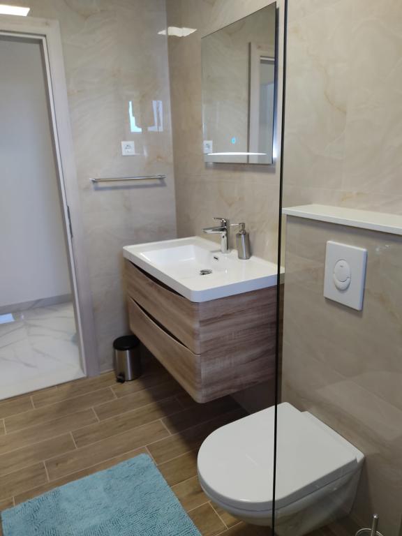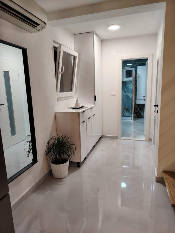 Indtil videre den bedste indkvartering i Kroatien. (Og det er vores 10 gange) Lejlighed 8 + 1 - meget rummelige, ren, aircondition (3xAC) findes 2 tekøkken, 2 køleskabe (hvad med så mange mennesker er meget nyttigt) køkken udstyret med alt hvad du behøver, 2 badeværelser (bruser, badekar), og vigtigst af alt, fantastisk terrasse med en fantastisk udsigt over havet, bjergene, byen. Selvom google maps ikke viser den vej til stranden så bare rolig ... :) sande naturskønne sti mellem oliventræer og nabohuse (afstamning tog os 7 minutter). Meget rummelige værelser med store senge og kabinetter ting, overser de to største terrasse, altaner på to mere i retning af bjergene. Det vigtigste - store ejere, meget venlige og hjælpsomme. Allerede har jeg ikke mødt så gæstfrie og hjælpsomme mennesker, som reagerer på enhver antydning, anmodning, forespørgsel. Anbefalet 100%
