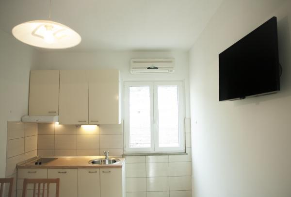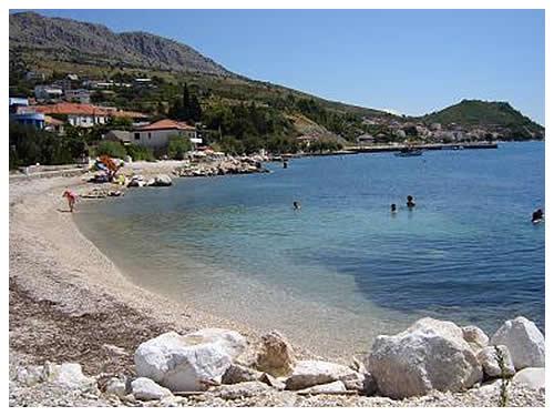 Lejligheden er beliggende i et familiehus 40 meter fra en smuk stenstrand med en legeplads og en cocktailbar. Det ligger 15 minutters kørsel fra centrum af Split.