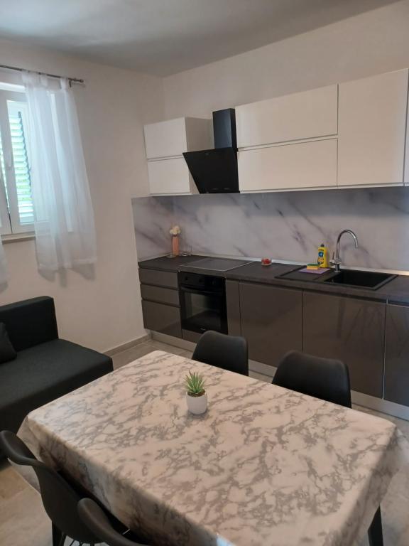 Lille studio perfekt til 2 personer til en ganske god pris. Udsigten over havet fra køkkenet og terrassen vidunderlig. Tamarisks træer på stranden giver skygge! Du behøver ikke paraply. Solstole til gæster. Tæt på butikken Tommy, hvor du kan købe noget til at spise. Bar og restaurant/konoba ikke langt. Fantastiske ejere - meget hjælpsomme og venlige!!!