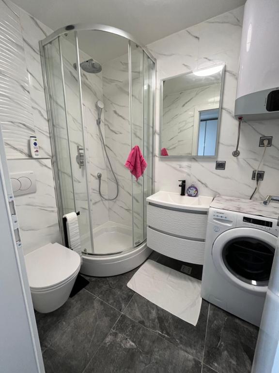 Lejligheden er smuk. Der er gratis liggestole til rådighed for gæsterne. Kudos til ejerne Anto og Irena, som er så venlige og kommunikative. De glædede os. Havet ligger kun få skridt fra lejligheden. Et supermarked ligger få minutters gang fra lejligheden. Vores ophold var perfekt, og vi vil helt sikkert vende tilbage igen.