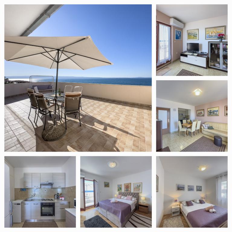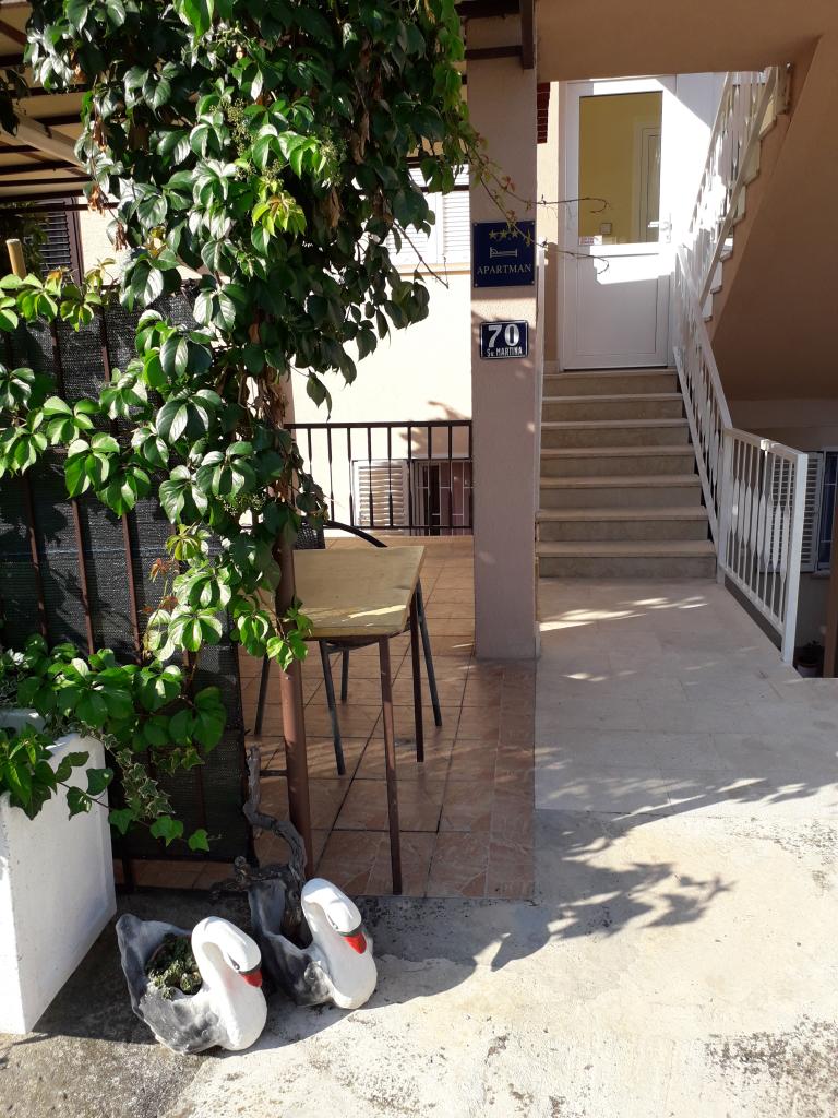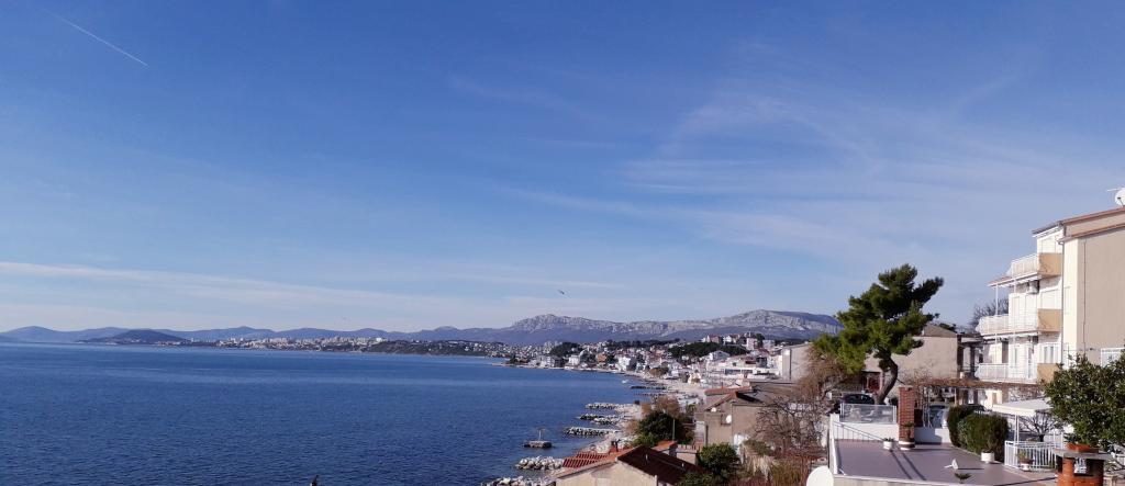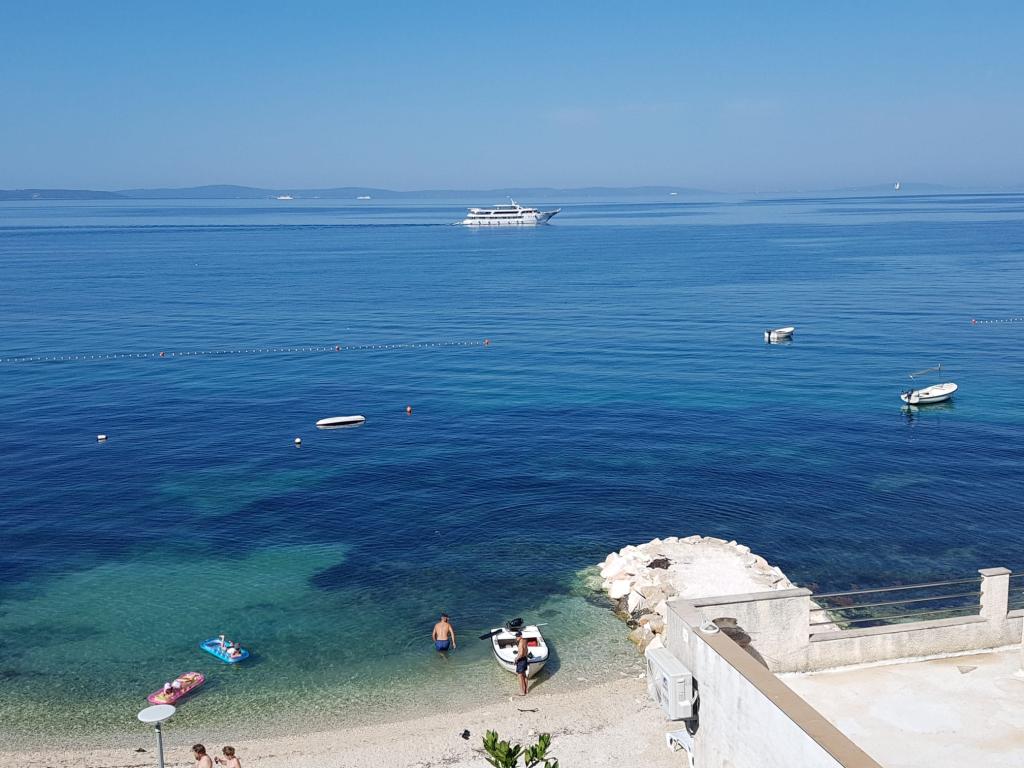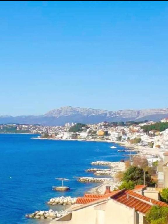 Fuldt udstyret lejlighed med to soveværelser, to klimaanlæg, wi -fi stor altan, spisestue og køkken og et rummeligt badeværelse i Sv. Martin Podstrana til havet, med en smuk udsigt over øerne og byen Split. Stranden er rullesten, velegnet til svømning af børn med en stor promenade ved havet. Den er ideel til familier med børn, fordi vejen ikke krydses. Gården er indhegnet, hvor der er parkering og grill. I nærheden er der butikker, restauranter, pizzeriaer, kaffebarer, butikker, læge, apotek og tandlæge, i nærheden af Split med UNESCO -beskyttede kulturminder - Sibenik, Trogir, Solin og Omis. Lejlighed s er stor og komfortabel og har 4 liggestole. Lejligheden er rummelig og komfortabel med en stor altan-terrasse paraplyer med smuk havudsigt kun 30 meter fra havet kom og se selv. nærliggende tennisbane, rideklub, cykelstier, sejlture til nærliggende øer, lokal mad frisk fisk skaldyr og andre specialiteter priskontor