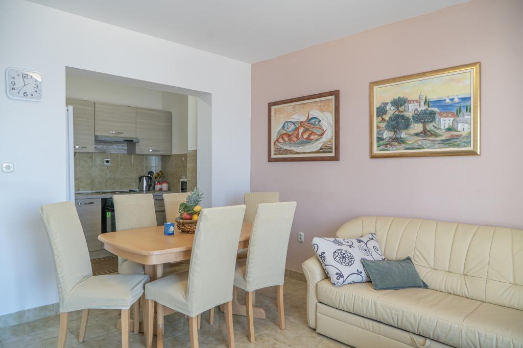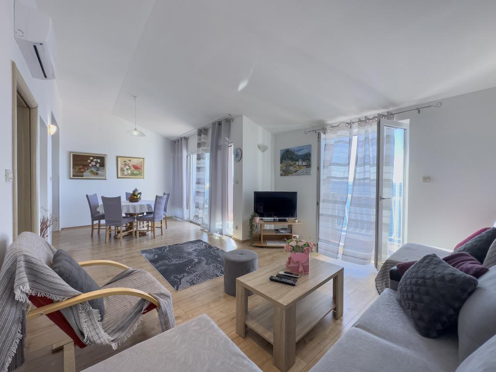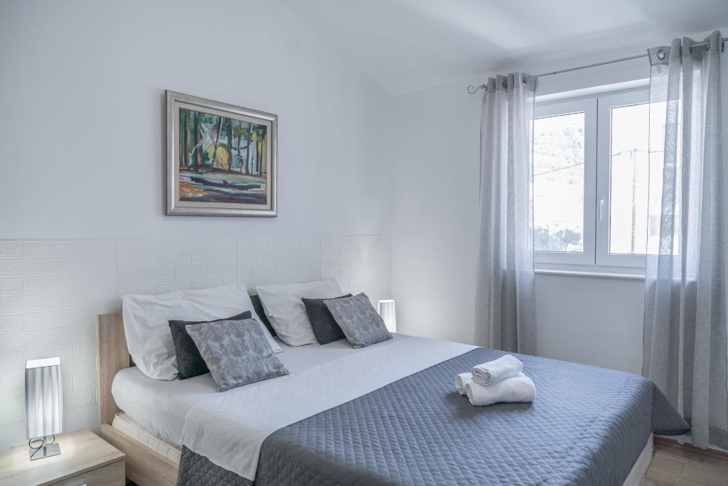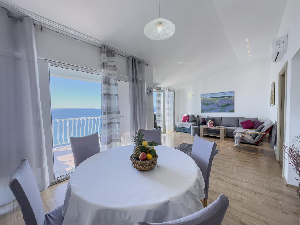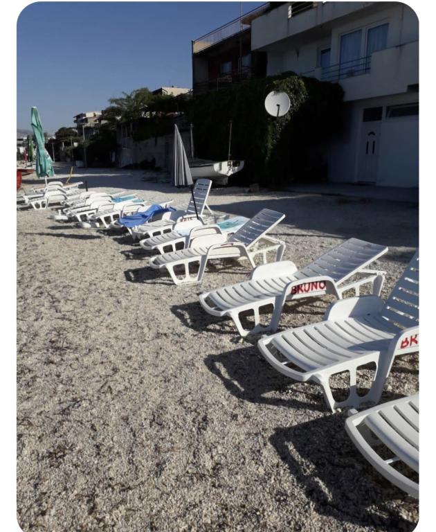 Fuldt udstyret lejlighed med to soveværelser, to klimaanlæg, wi -fi stor altan, spisestue og køkken og et rummeligt badeværelse i Sv. Martin Podstrana til havet, med en smuk udsigt over øerne og byen Split. Stranden er rullesten, velegnet til svømning af børn med en stor promenade ved havet. Den er ideel til familier med børn, fordi vejen ikke krydses. Gården er indhegnet, hvor der er parkering og grill. I nærheden er der butikker, restauranter, pizzeriaer, kaffebarer, butikker, læge, apotek og tandlæge, i nærheden af Split med UNESCO -beskyttede kulturminder - Sibenik, Trogir, Solin og Omis. Lejlighed s er stor og komfortabel og har 4 liggestole. Lejligheden er rummelig og komfortabel med en stor altan-terrasse paraplyer med smuk havudsigt kun 30 meter fra havet kom og se selv. nærliggende tennisbane, rideklub, cykelstier, sejlture til nærliggende øer, lokal mad frisk fisk skaldyr og andre specialiteter priskontor