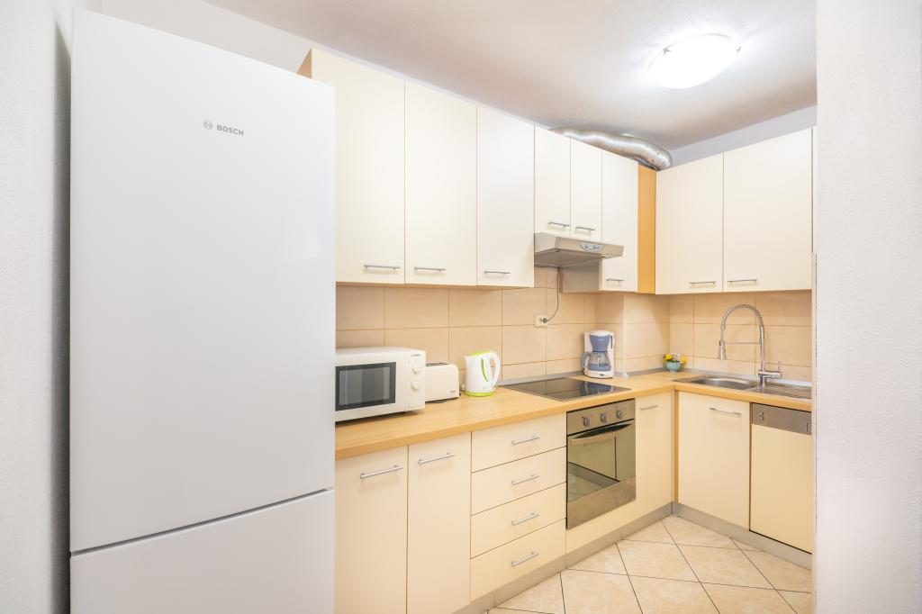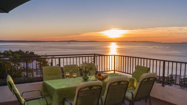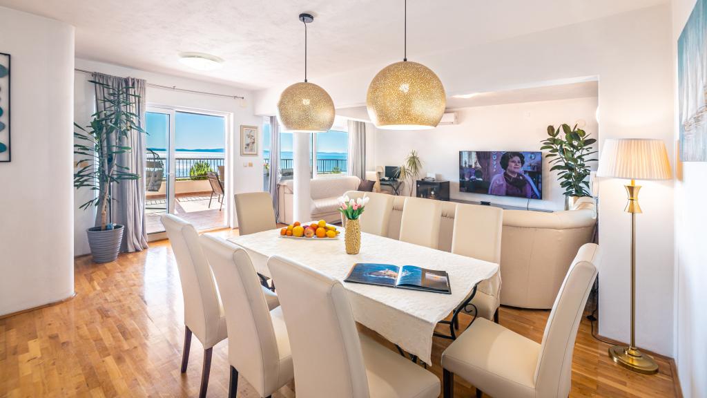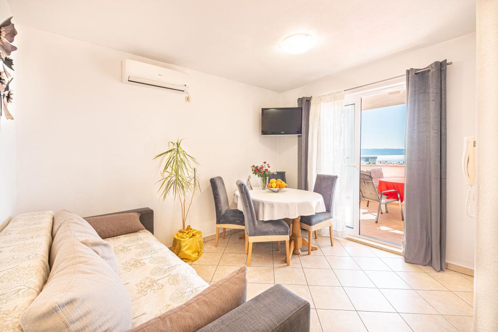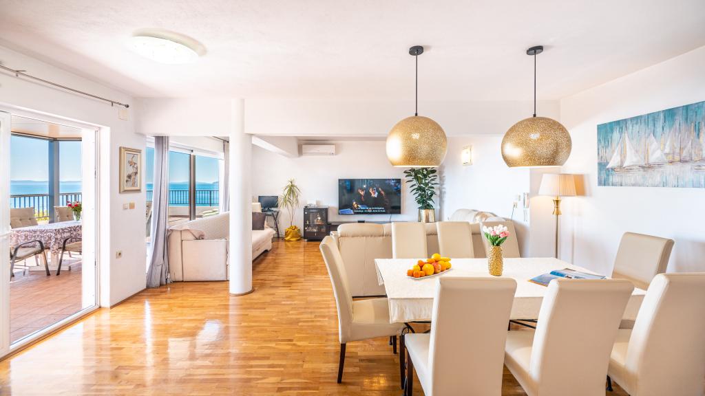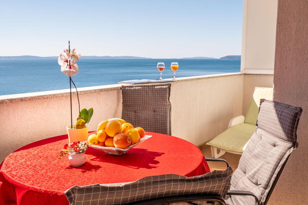 Lejligheden er beliggende i den rolige turistby Podstrana, meget tæt på havet. Alt er tæt, butikker, fiskemarked, supermarked, pengeveksling, sportshaller, golfbaner, hoteller, restauranter. Lejligheden har en stor terrasse med en smuk udsigt over havet, øer og svømmere.