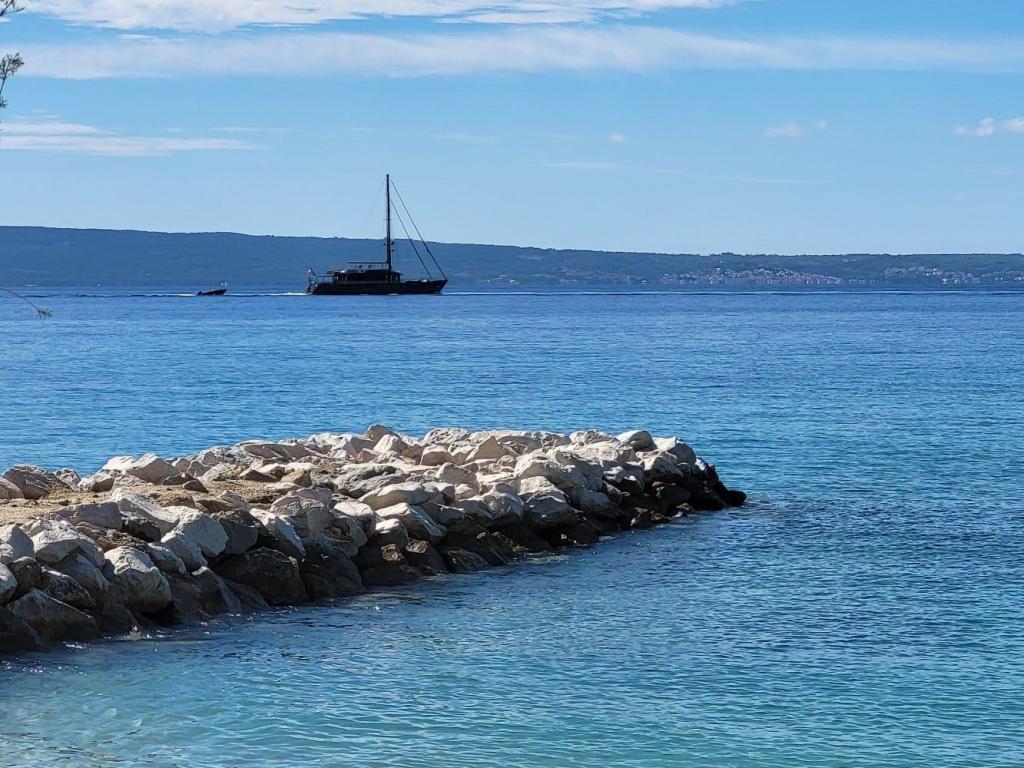 Super, Gæstfrihed er der var meget vigtigt, at der er meget smukkere end billederne. Udsigten er fantastisk smuk. Placering lige på stenstrand, smuk have og liggestole gratis. En parkeringsplads til din bil er direkte tilgængelig i gården. Super busforbindelse til Split og Omis. Vi vil ikke tøve med at gå tilbage der og leje lejligheden. Tak for sådan en vidunderlig og afslappende ferie.