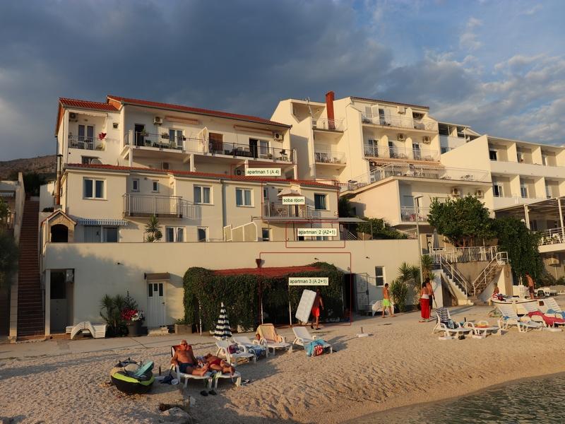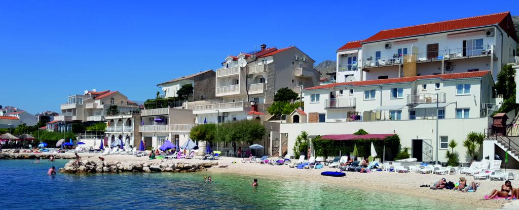 Fuldt udstyrede lejligheder i Podstrana, beliggende på første række til havet. Lejlighederne ligger 50 m fra butikker og restauranter. Sikret sted på stranden med liggestole og parasoller inkluderet i prisen.