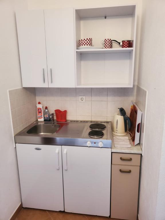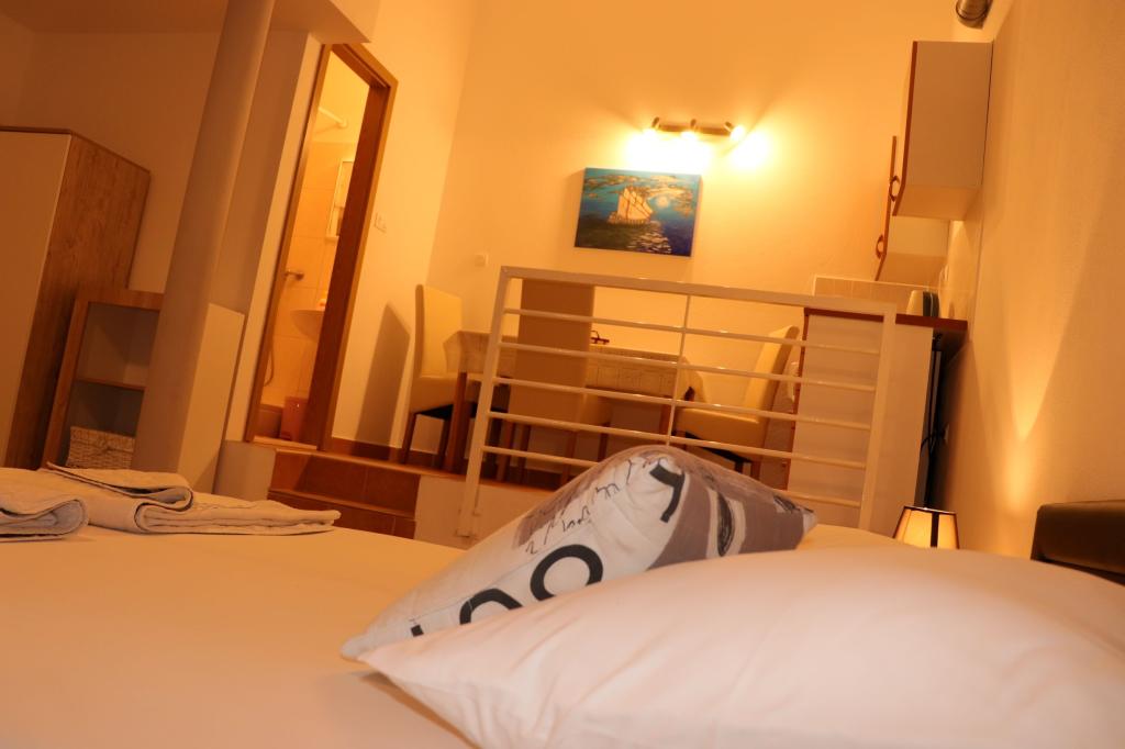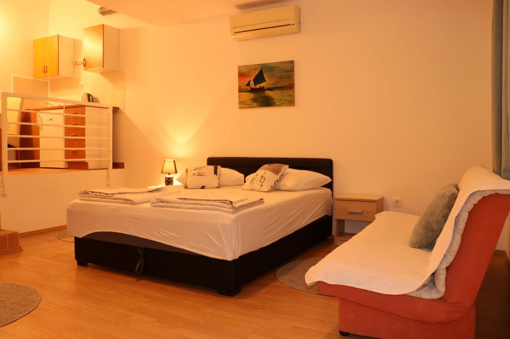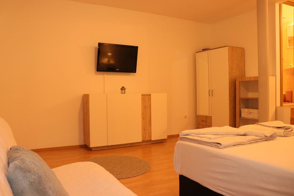 Værterne er vidunderlige unge mennesker. Indkvarteringen ligger bogstaveligt talt lige ved havet, man går ud og er på stranden med gratis liggestole og parasoller. Grundlæggende set er annoncen på Apartmanija troværdig, alle oplysningerne er korrekte, og man vil ikke blive skuffet, når man kommer. Tillykke, alt er fremragende.