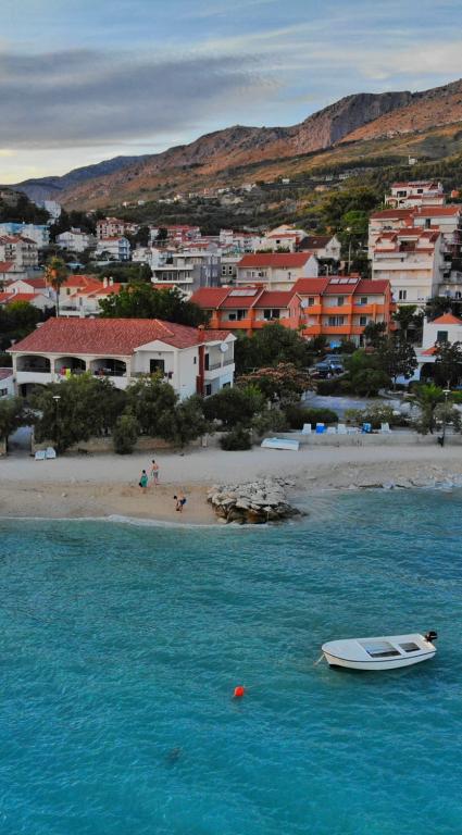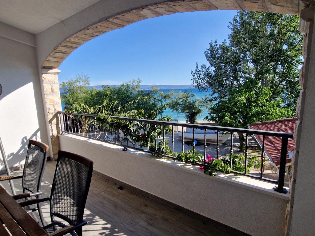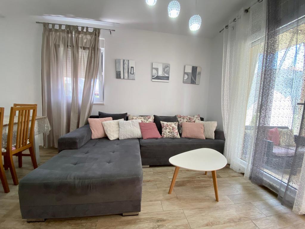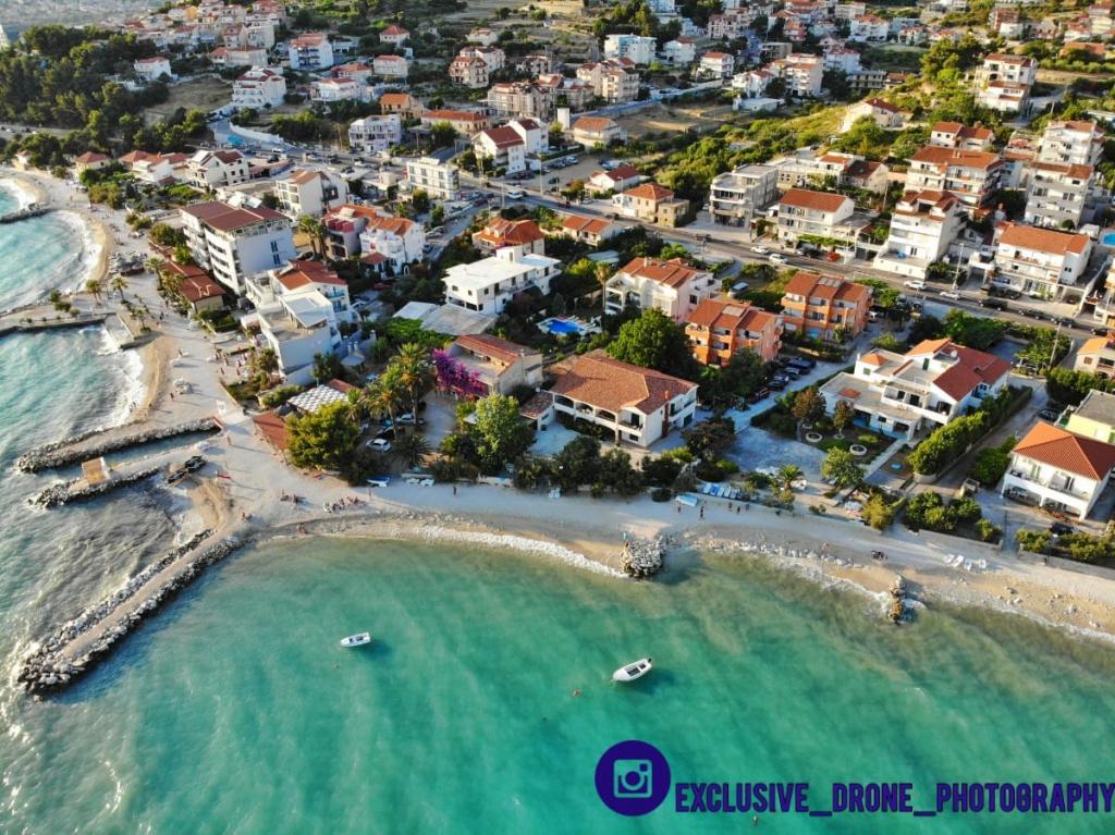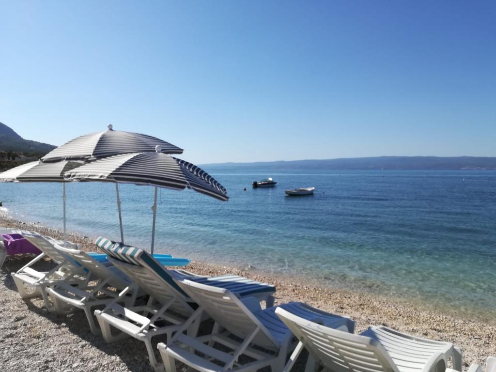 Helt nye lejligheder beliggende 10 m fra havet i rolige omgivelser. I nærheden er et marked, café restaurant, bageri, apotek. Lejlighederne ligger 12 km fra Split, 13 km fra Omis Lejlighederne har store terrasser.