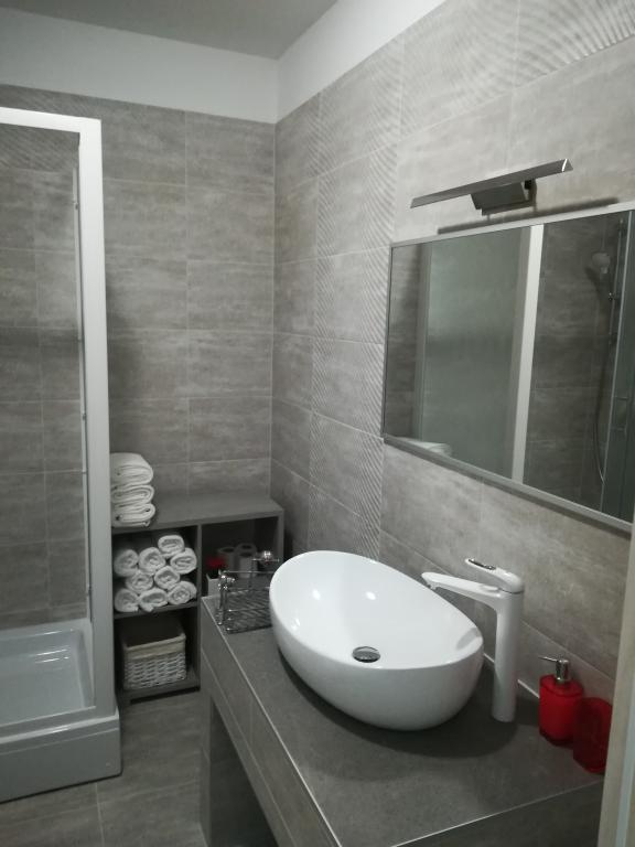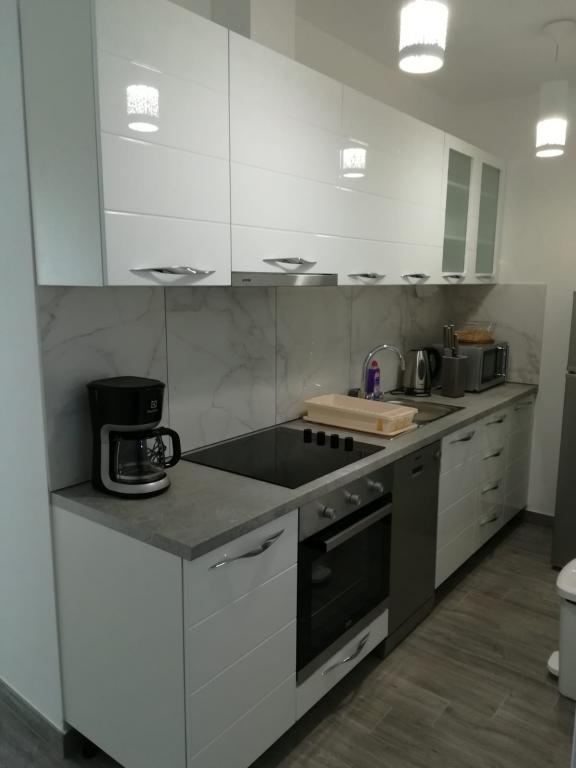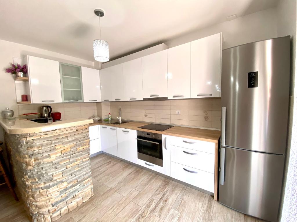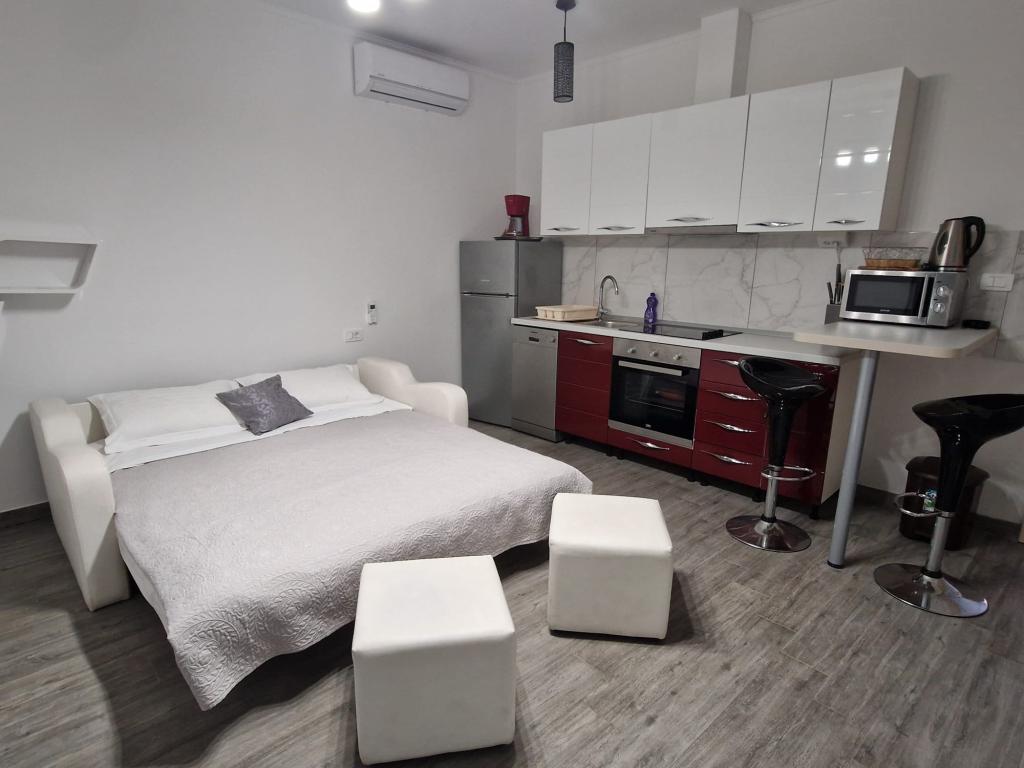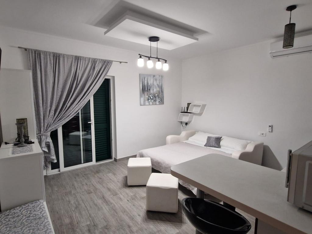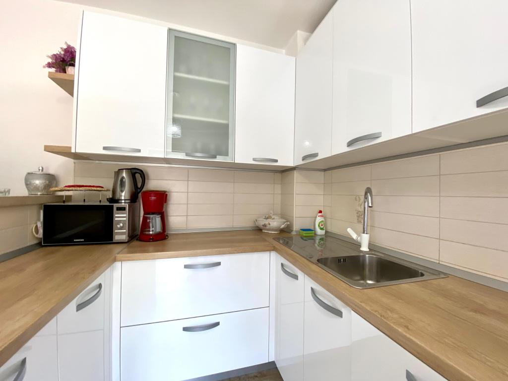 Helt nye lejligheder beliggende 10 m fra havet i rolige omgivelser. I nærheden er et marked, café restaurant, bageri, apotek. Lejlighederne ligger 12 km fra Split, 13 km fra Omis Lejlighederne har store terrasser.