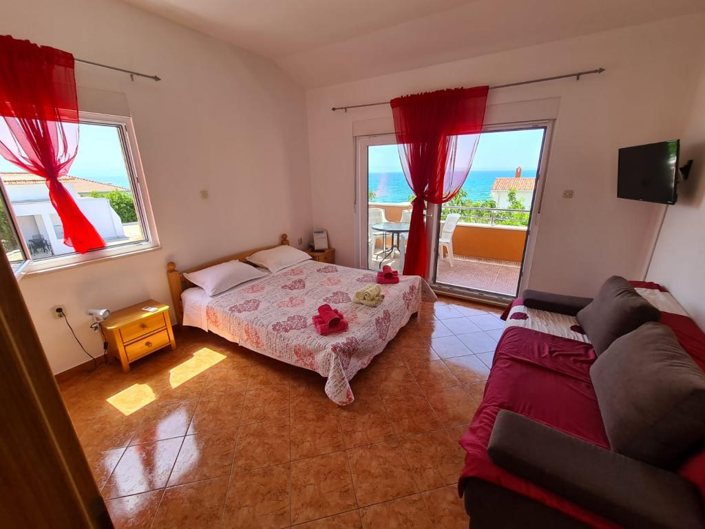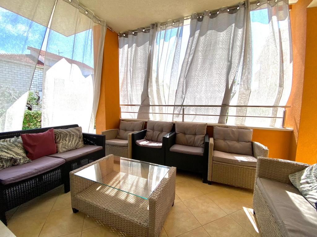 Turistskat er inkluderet i prisen.Prisen på lejligheden inkluderer også en liggestol, der leveres komplet med en paraply for bedre beskyttelse mod solen på varme sommereftermiddage og morgener. Parkering er også inkluderet i prisen og ligger lige ved siden af lejligheden. I tilfælde af reservation på 7 dage og mere serverer vi gæster fisk fanget af vores egen båd og ferskner plukket i vores eget felt. Vi sælger også hjemmelavet gløgg og brandy til en lav pris. Vi tilbyder også hjemmelavet olivenolie, og vi sælger den også i større mængder.