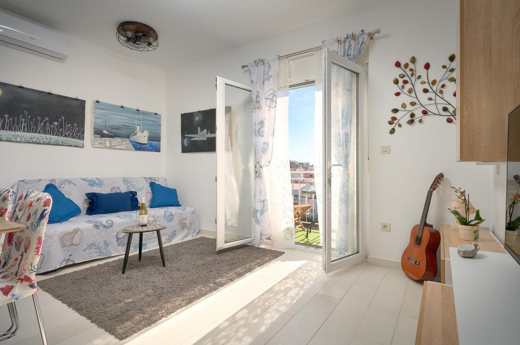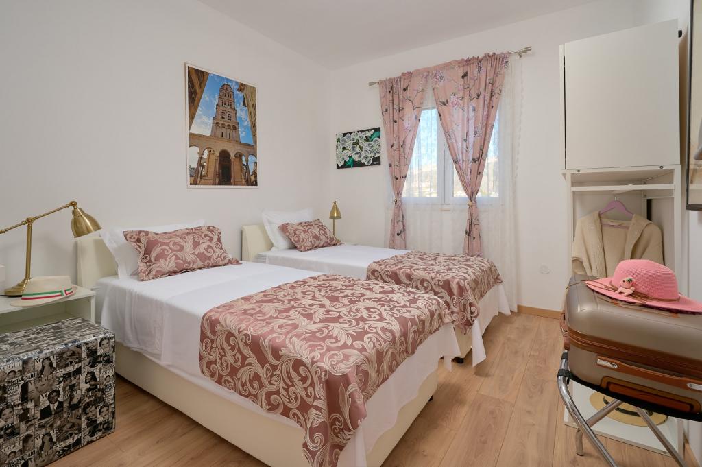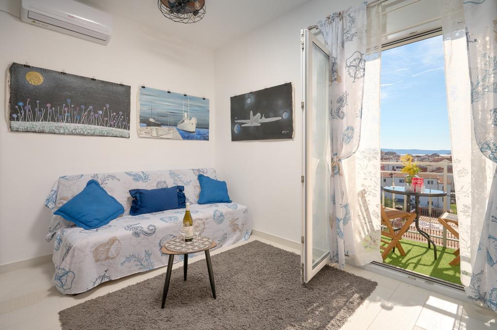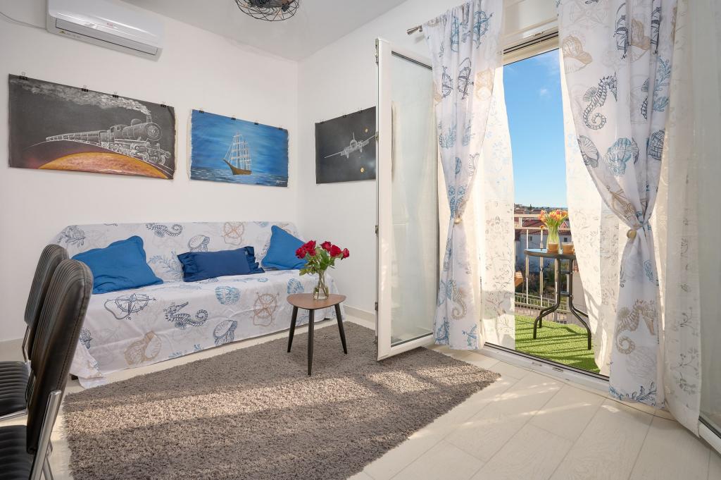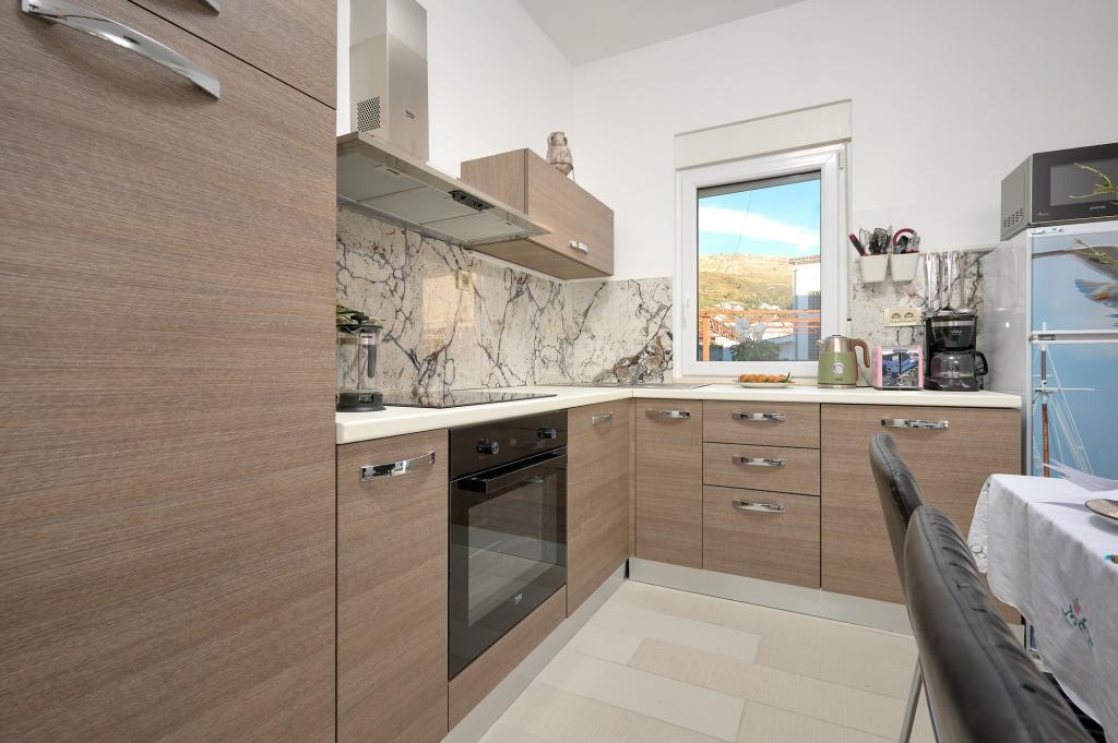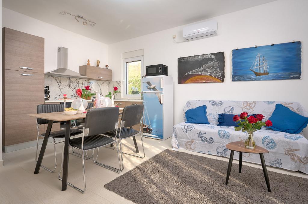 Tre nyrenoverede lejligheder "Sita" ligger i Podstrana, lige ud til havet. Denne kyst-oase, som kan prale af uberørte strande og krystalklart hav, er den perfekte destination for familier og alle dem, der leder efter et fredeligt tilflugtssted i en lille by med spændingen og den kulturelle rigdom i det nærliggende Split. Hver af vores lejligheder emmer af luftighed og komfort, og tilbyder to soveværelser, et moderne badeværelse, et funktionelt køkken med integreret stue og en privat balkon med udsigt over havet. Til din uforstyrrede ferie er hver lejlighed omhyggeligt designet og udstyret med moderne faciliteter: aircondition, WiFi, tv. Parkering er inden for ejendommen, mens nærheden af restauranter, butikker, stenstrande og sportsbaner byder på utallige muligheder for udforskning og aktiviteter.