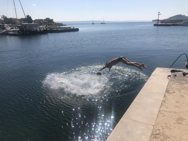 Giv dig selv en pause fra hverdagen og finde fred i en smuk felt på Ugljan. Lejligheden er beliggende ud til havet, ligger i centrum og er placeret ved siden af restauranten. Det er kun 5 minutter fra butikker og 1 km fra Preko; hovedbyen på øen Ugljan hvor færgen dock, marina, læge, tankstation ... Foran lejligheden er en konkret strand, og efter en 2 minutters gang sandstranden og 500 meter efter den mudrede stranden med sportsfaciliteter.