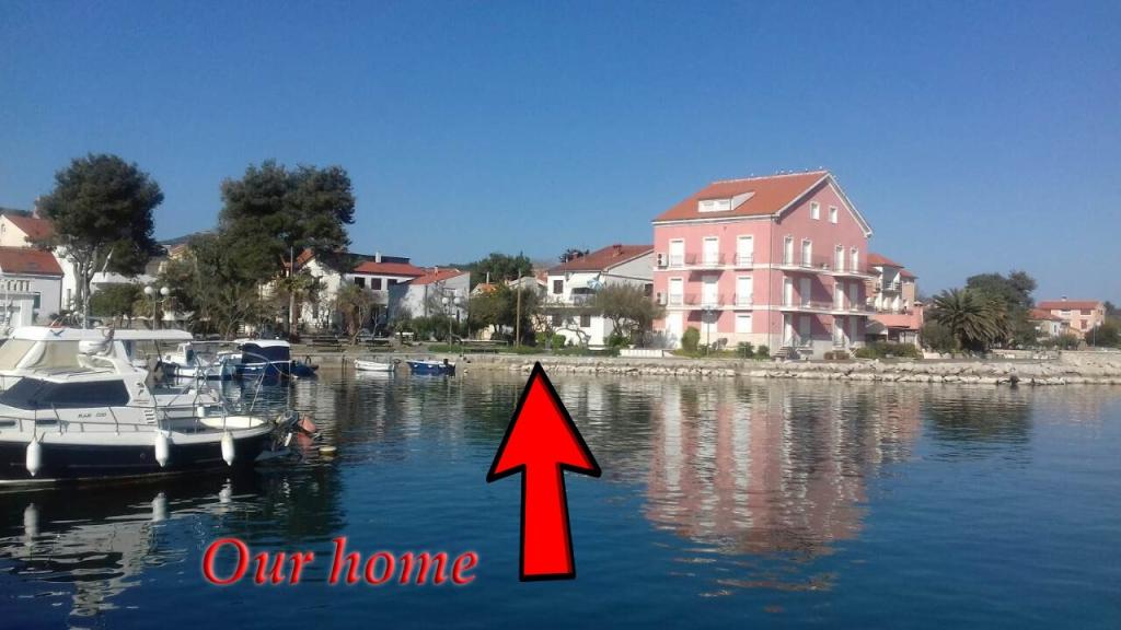 Kære gæster, med specialpriser for juni måned, slap af i vores feriehus, som ligger kun 10 meter fra havet. Der kan I svømme eller gå langs den smukke promenade langs havet til en større stenstrand cirka 30 meter fra huset. Ved siden af huset er der en smukt anlagt park med bænke til at sidde og hvile sig på. I nærheden (ca. 20-50 meter) er der en restaurant, pizzeria, en lille legeplads for børn og et supermarked. Huset har et køkken (komfur med ovn, elkedel, opvaskemaskine, køleskab) med spisestue, en stue med sovesofa (seng til to) og kabel-tv, et badeværelse og et soveværelse med en 140x200 seng. En intern trappe fører til første sal, hvor der er to soveværelser (et med en 160x200 seng og det andet med to 90x200 senge), et badeværelse med vaskemaskine og en terrasse med siddeområde, hvorfra der er udsigt over havet, byen Zadar og de nærliggende øer. Der er gratis WiFi overalt på ejendommen, og der er parkering på fællesområderne.